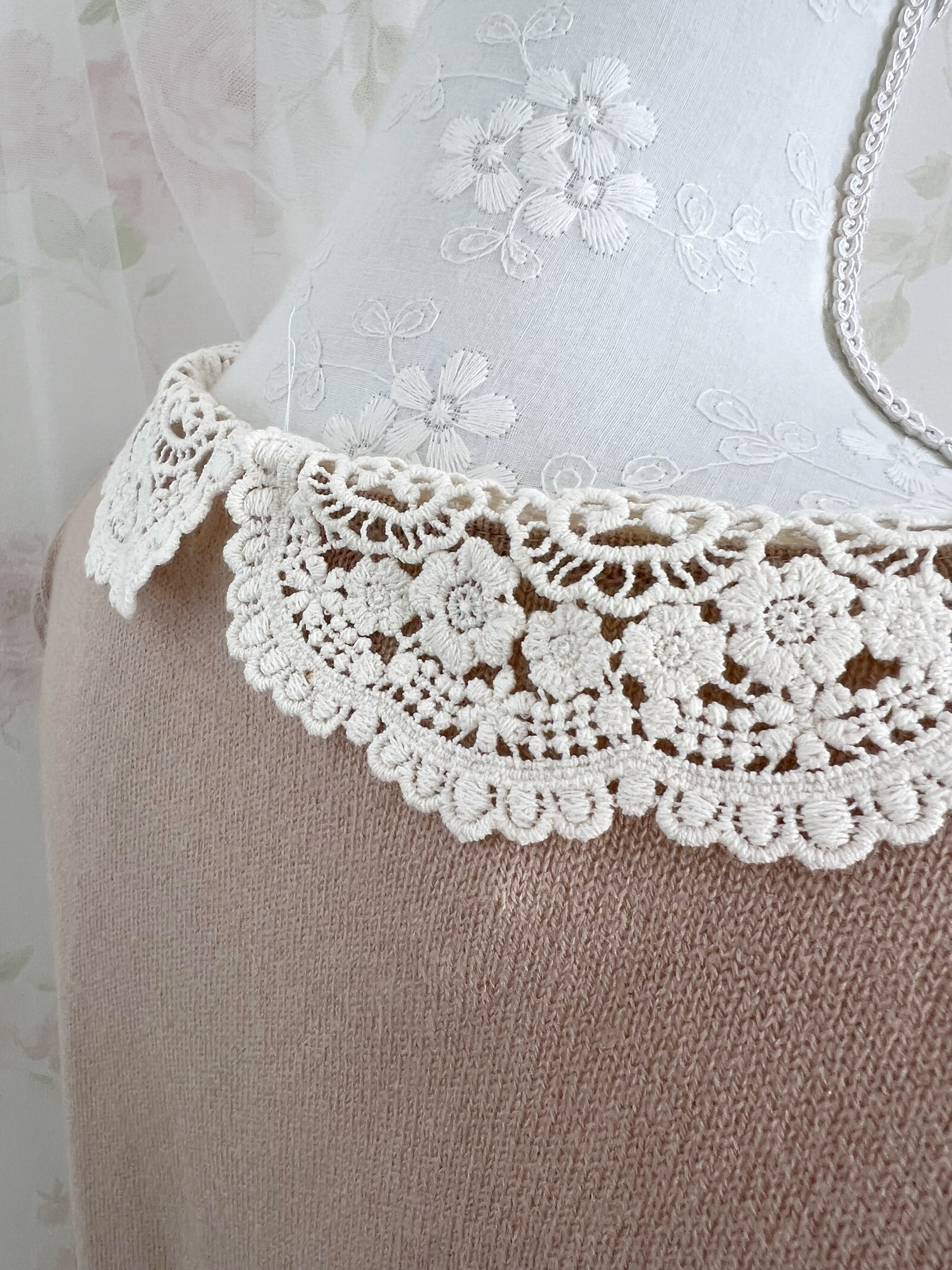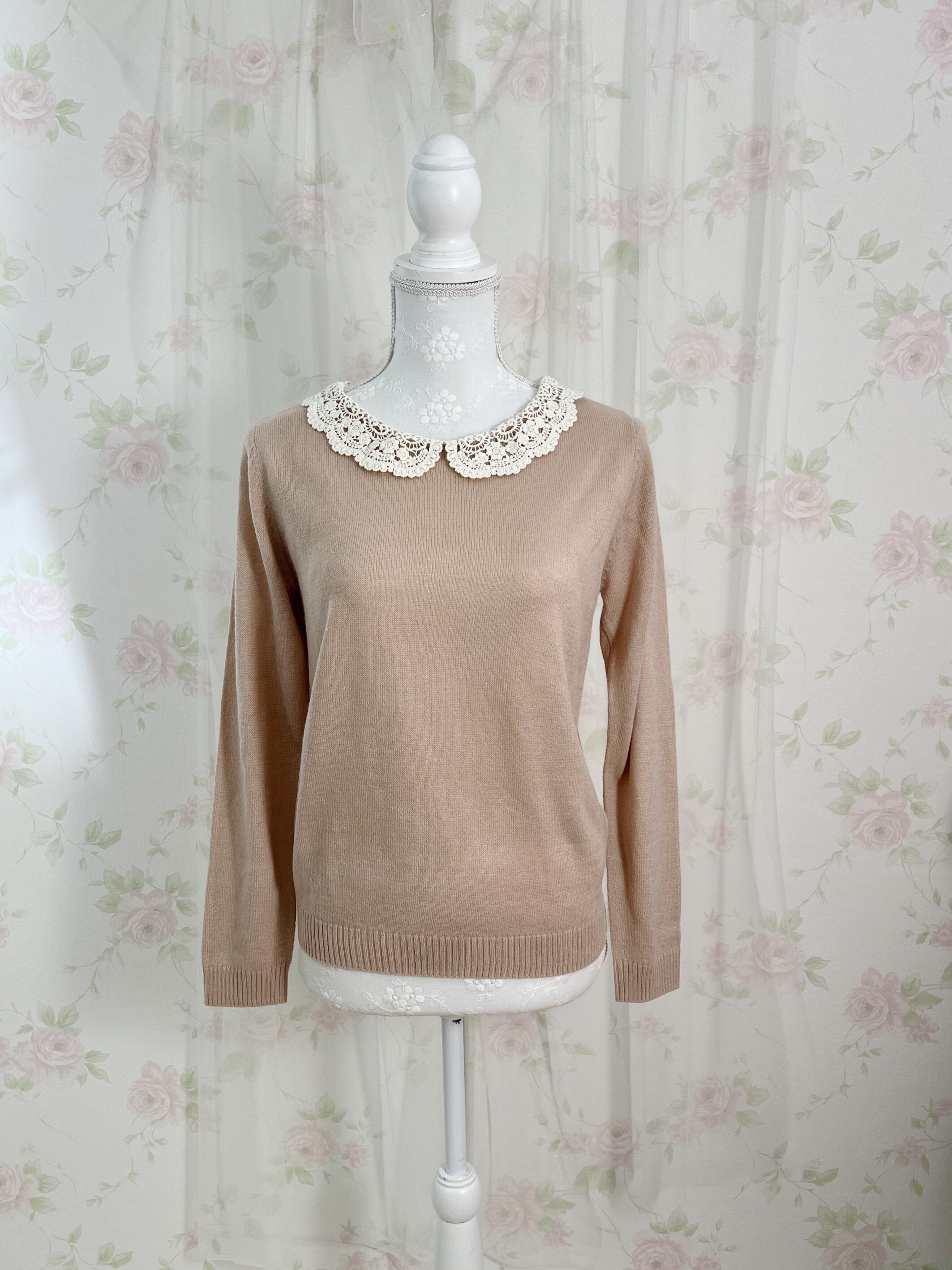 earth music & ecology Lace Collar Knit Top (Milk Tea)