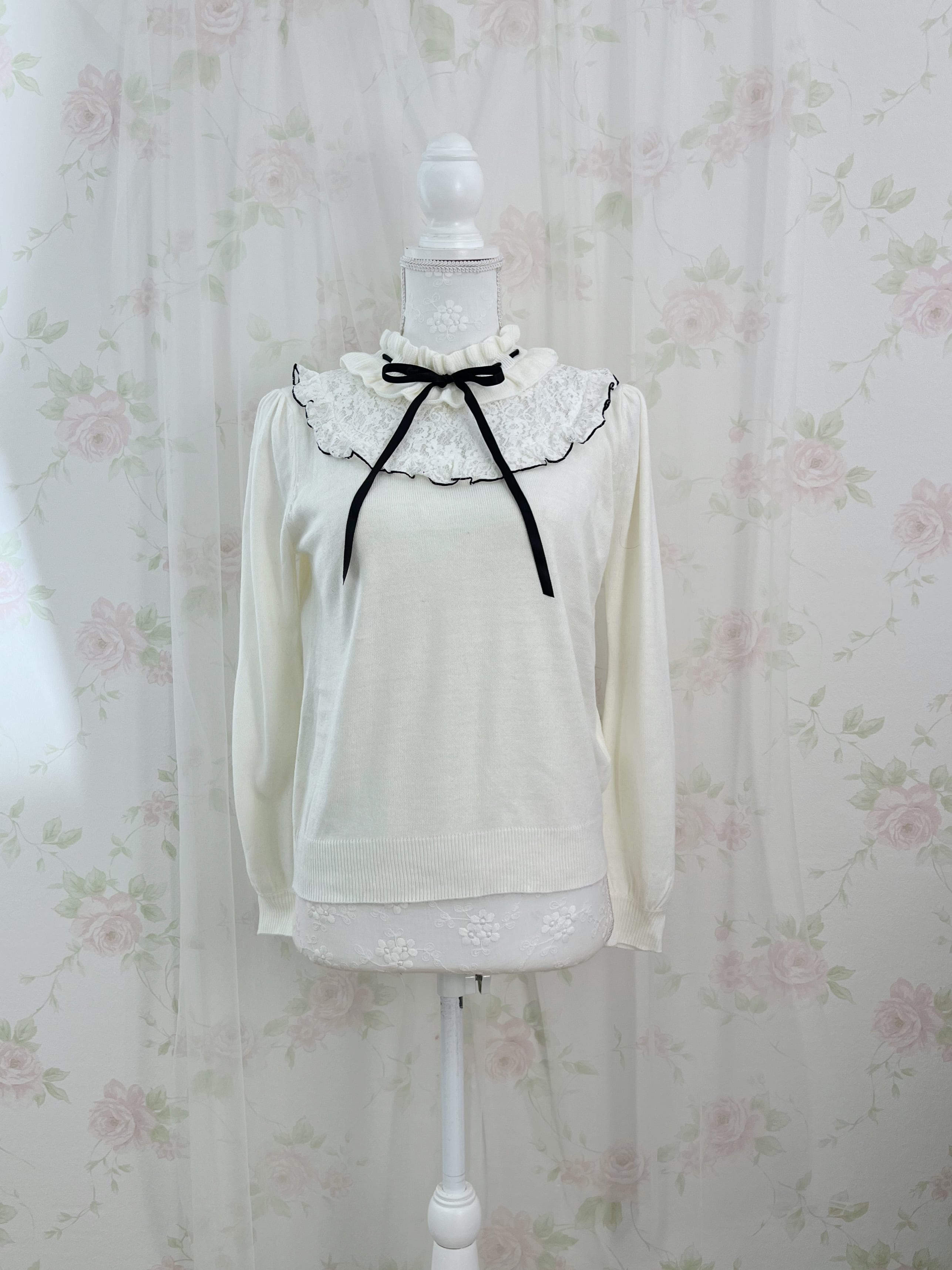 Secret Honey Lace Front Dolly Knit Top (Ivory)