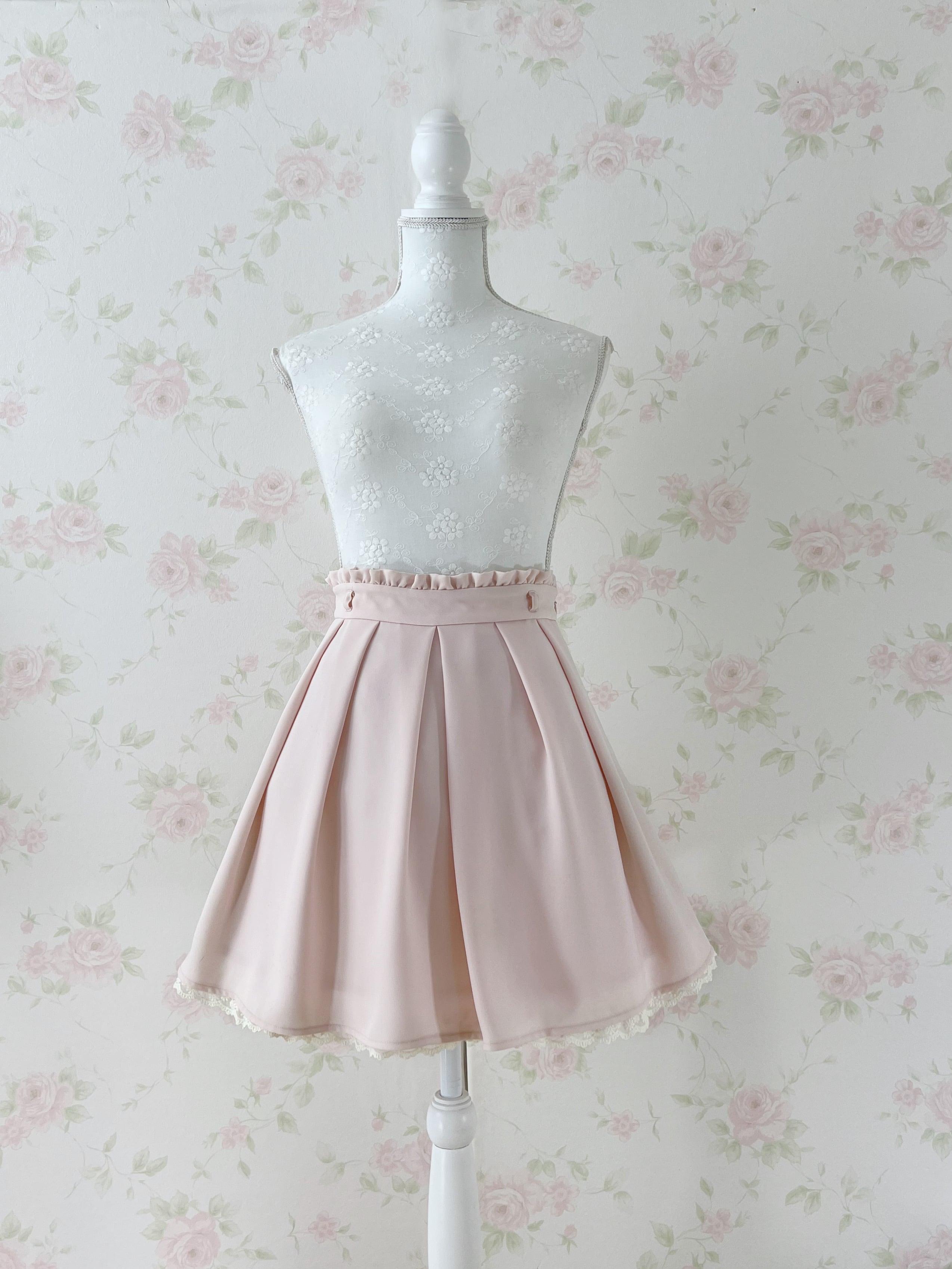 LODISPOTTO Pleated Lace Hem Skirt (Baby Pink)