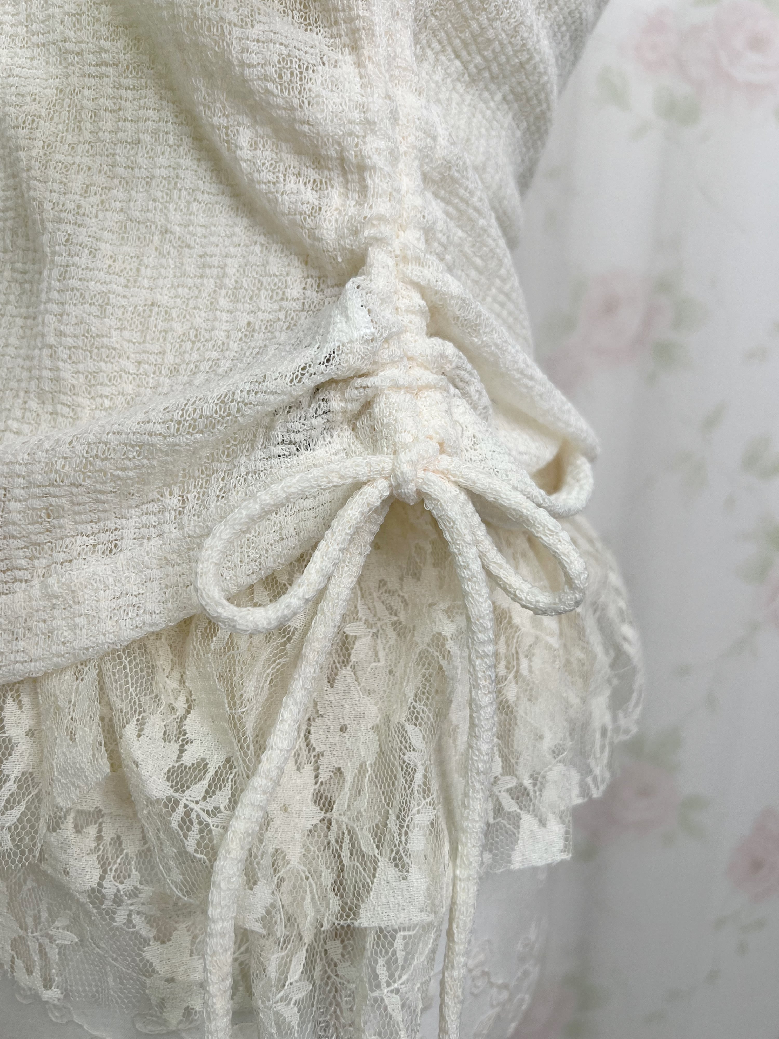 One Shoulder Knit Lace Camisole Set (Ivory)