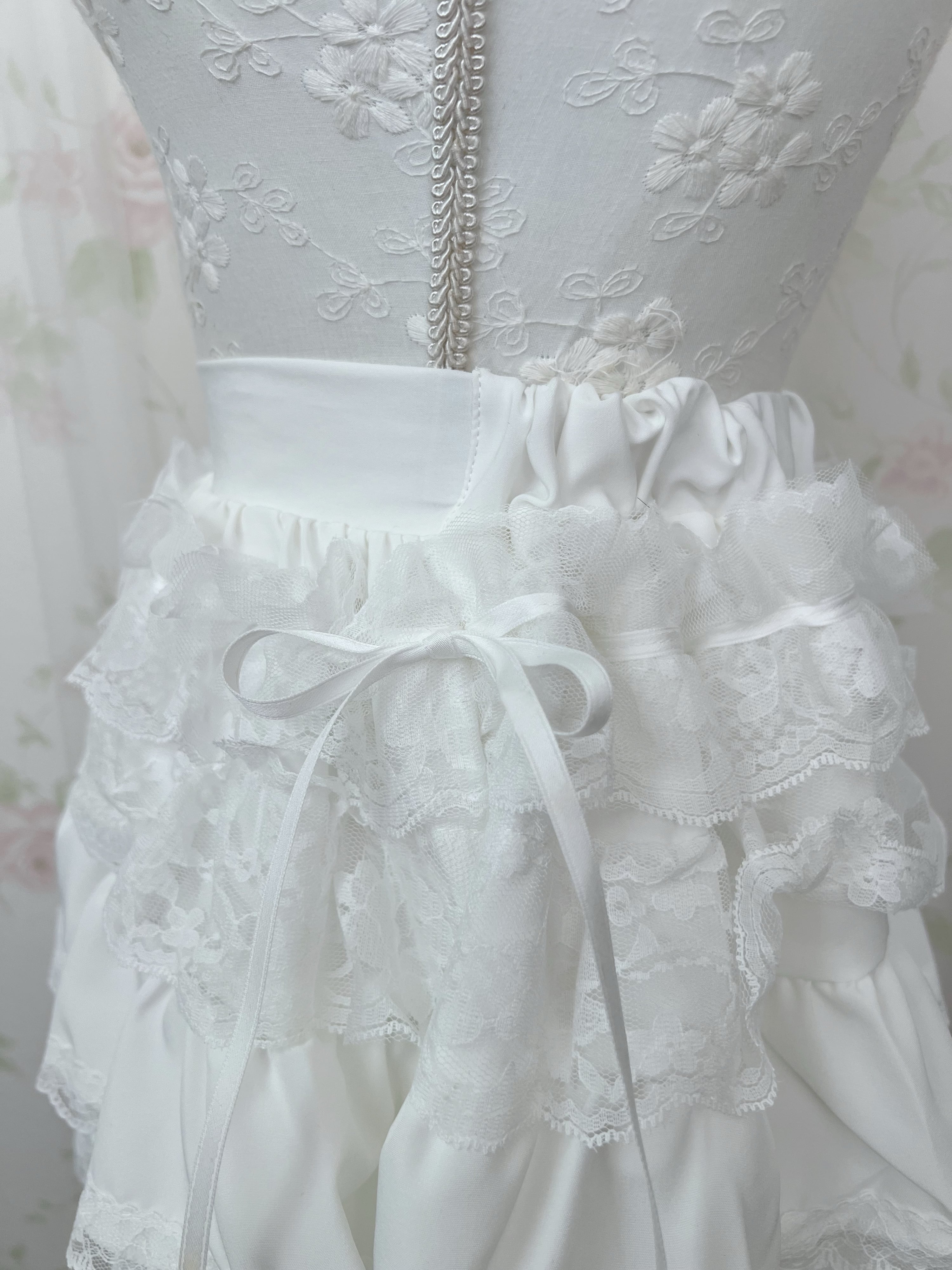 (Pre-order) Side Bow Lacy Tired Skirt (White)