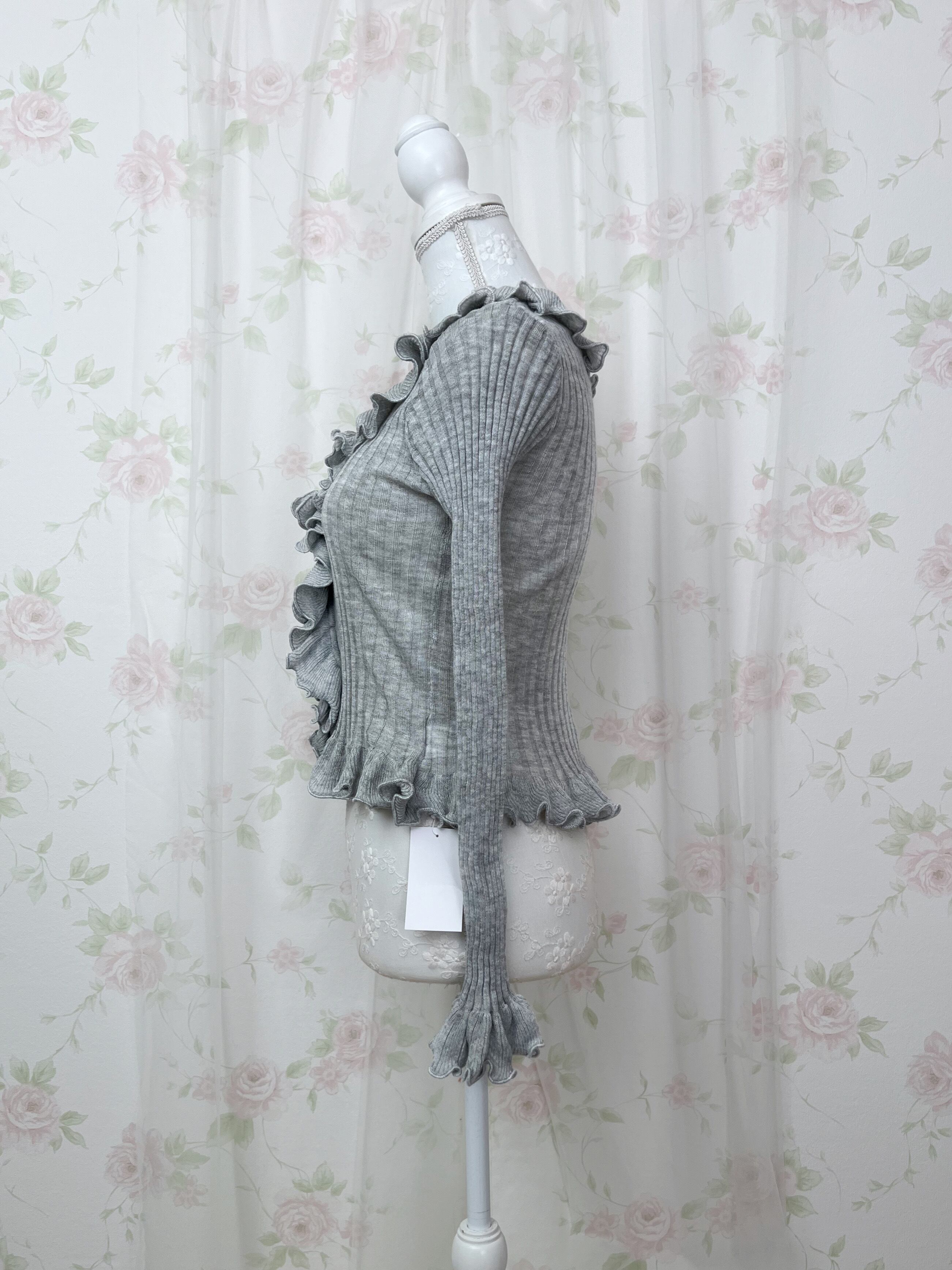 TITTY&CO. Ruffled Hem Whimsical Cardigan (Gray)
