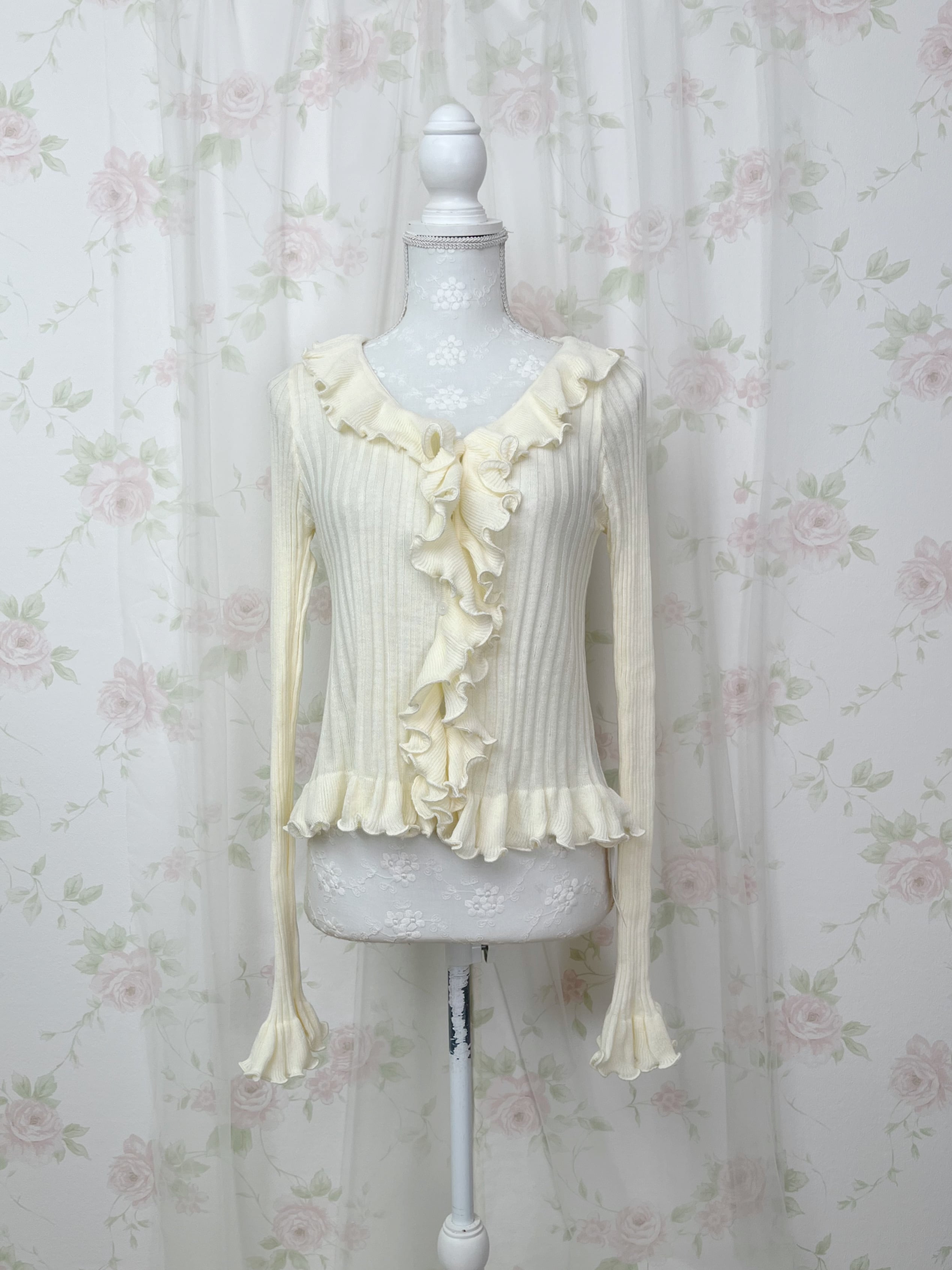 TITTY&CO. Ruffled Hem Whimsical Cardigan(Ivory)