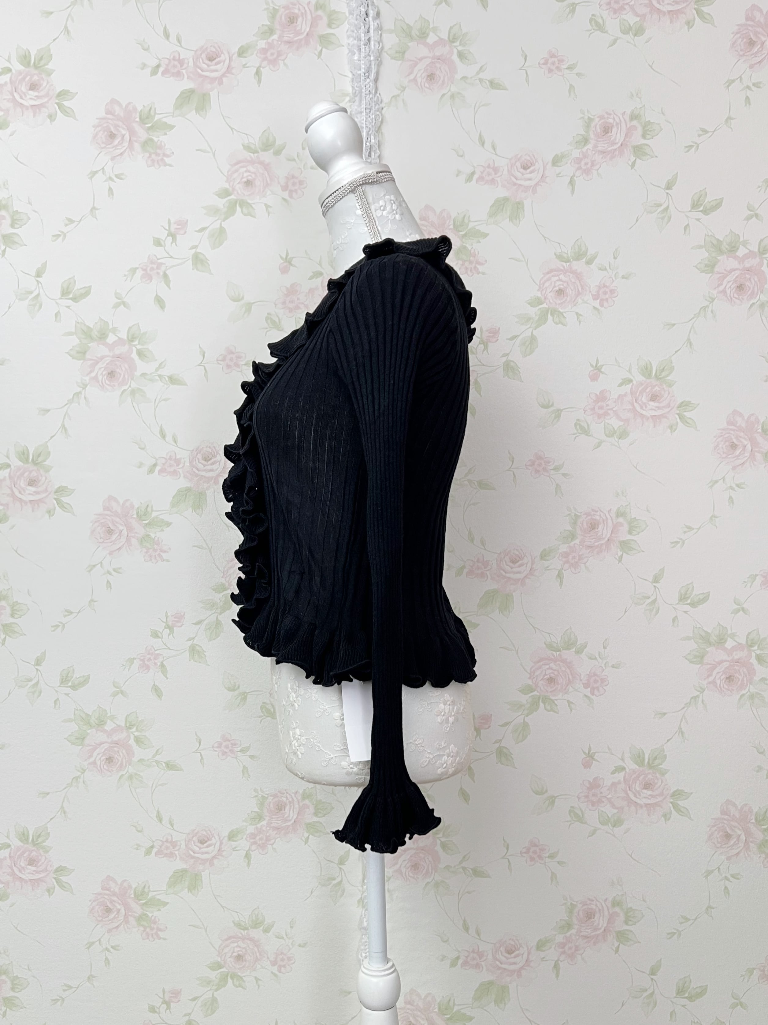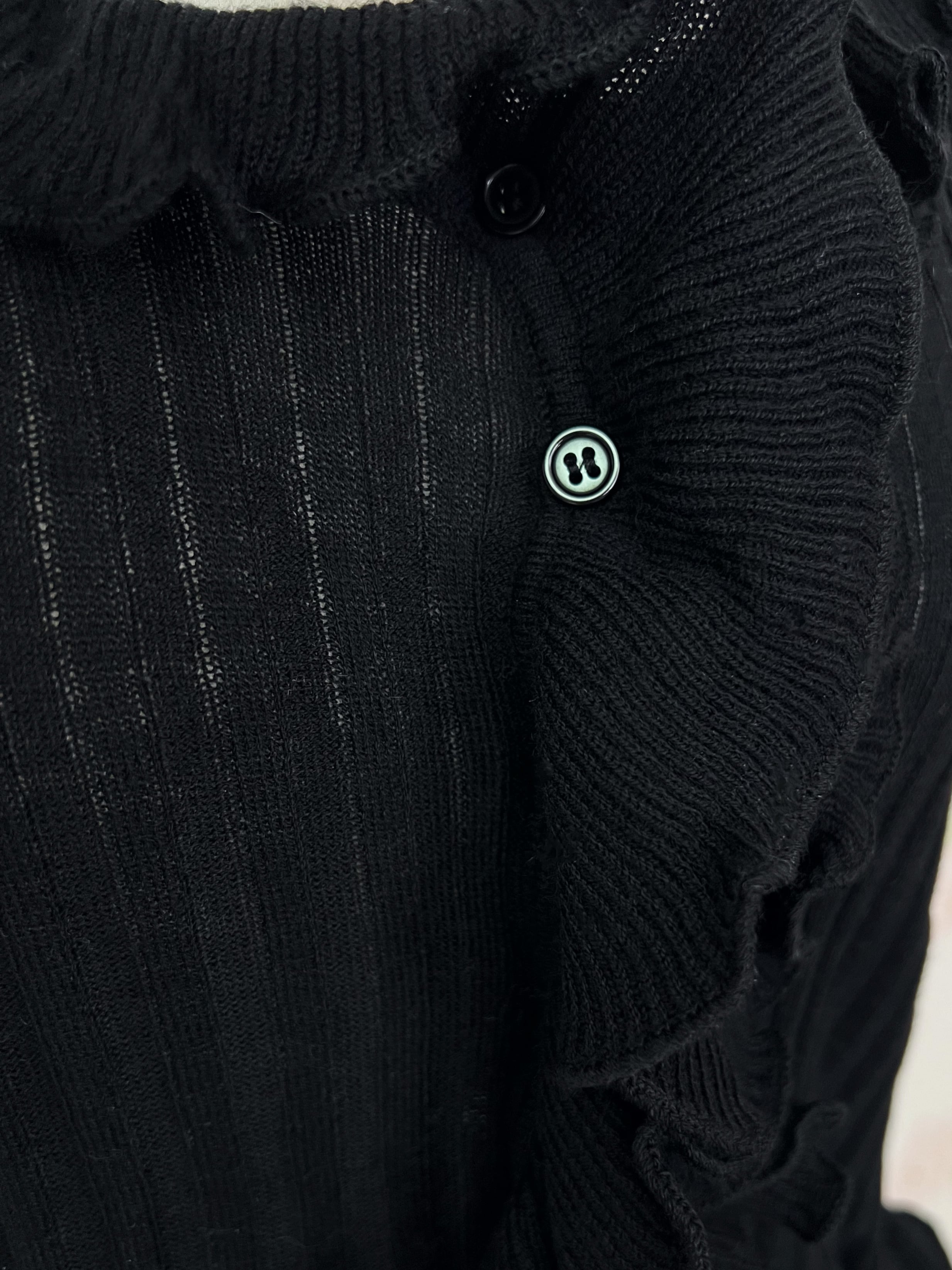 TITTY&CO. Ruffled Hem Whimsical Cardigan(Black)