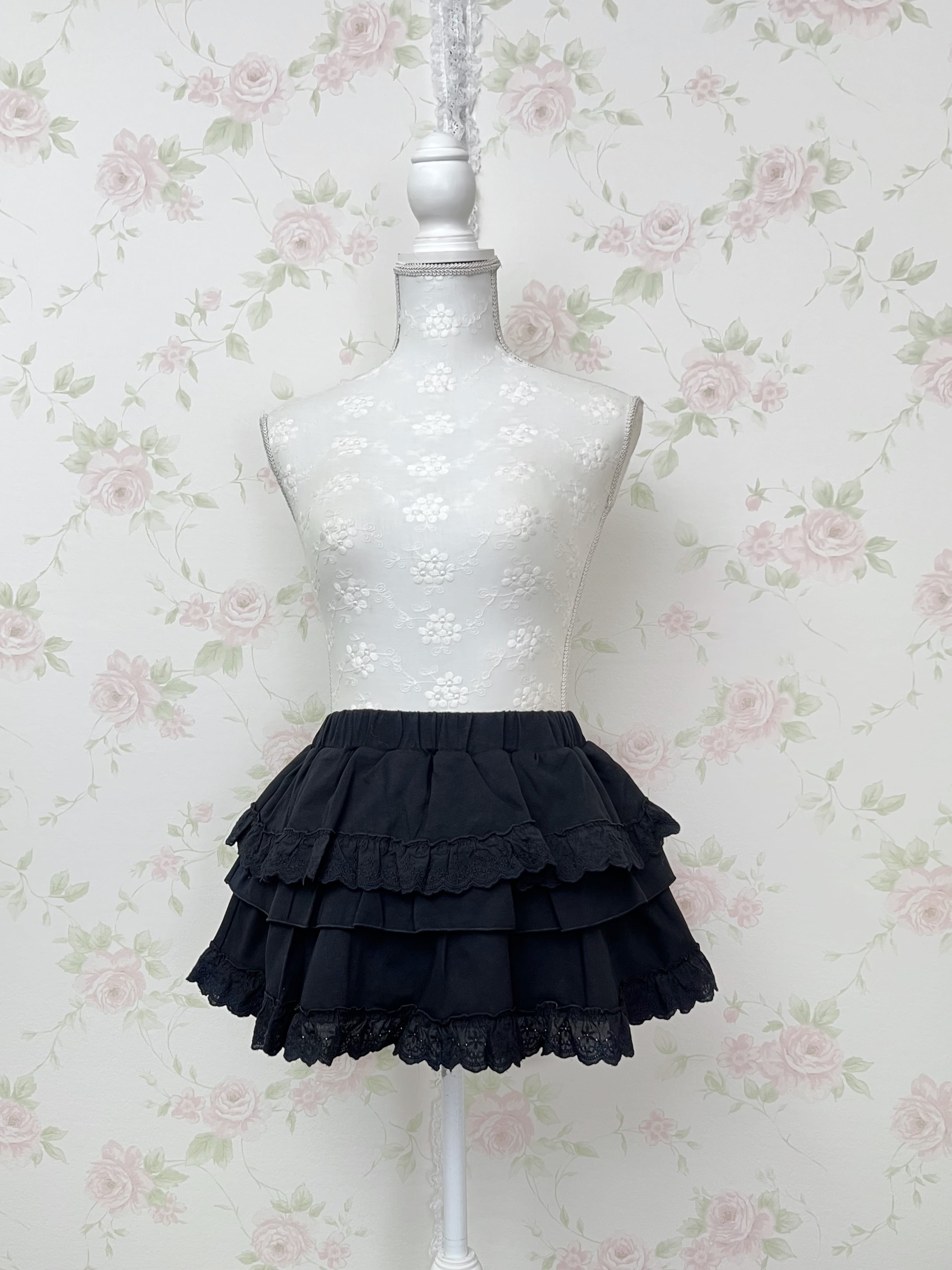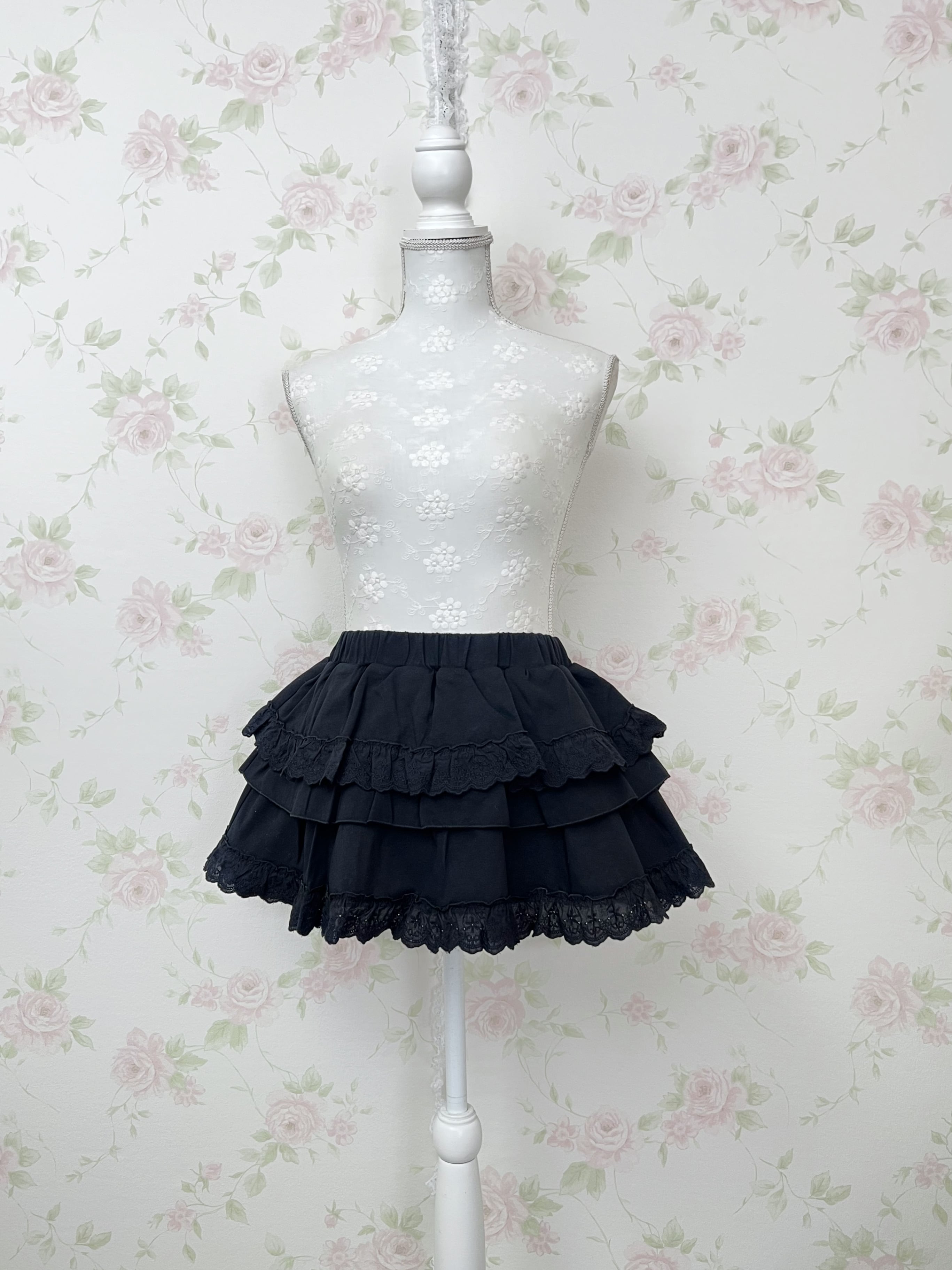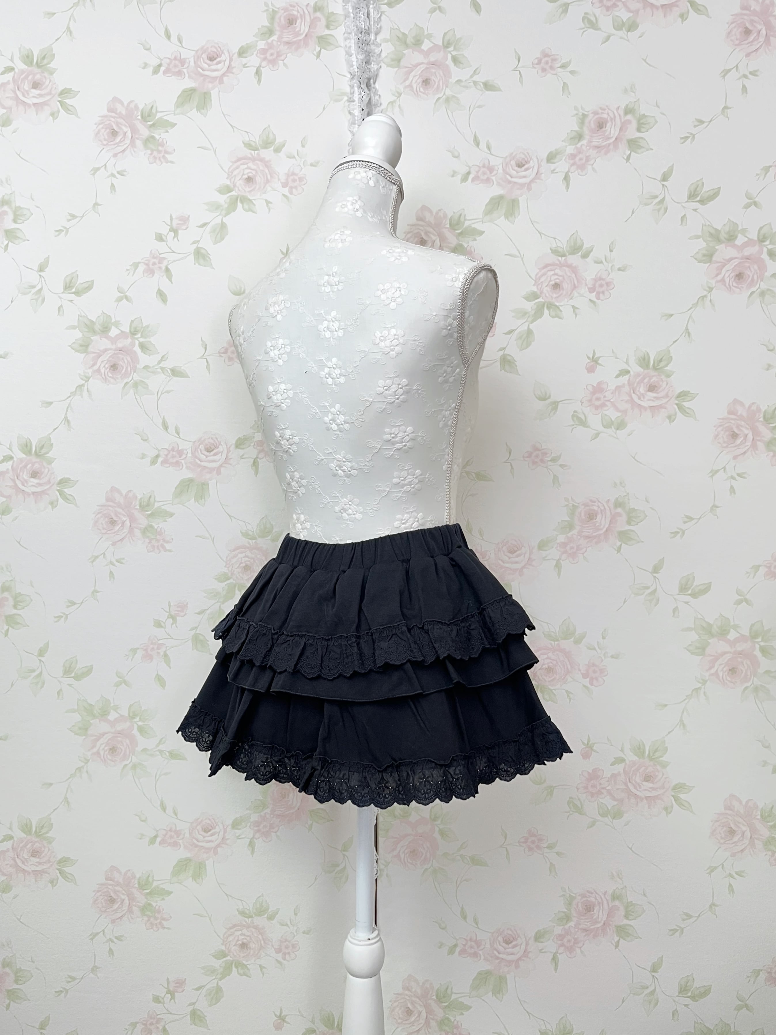 Cotton Lace Ruffled Tiered Skirt (Black)