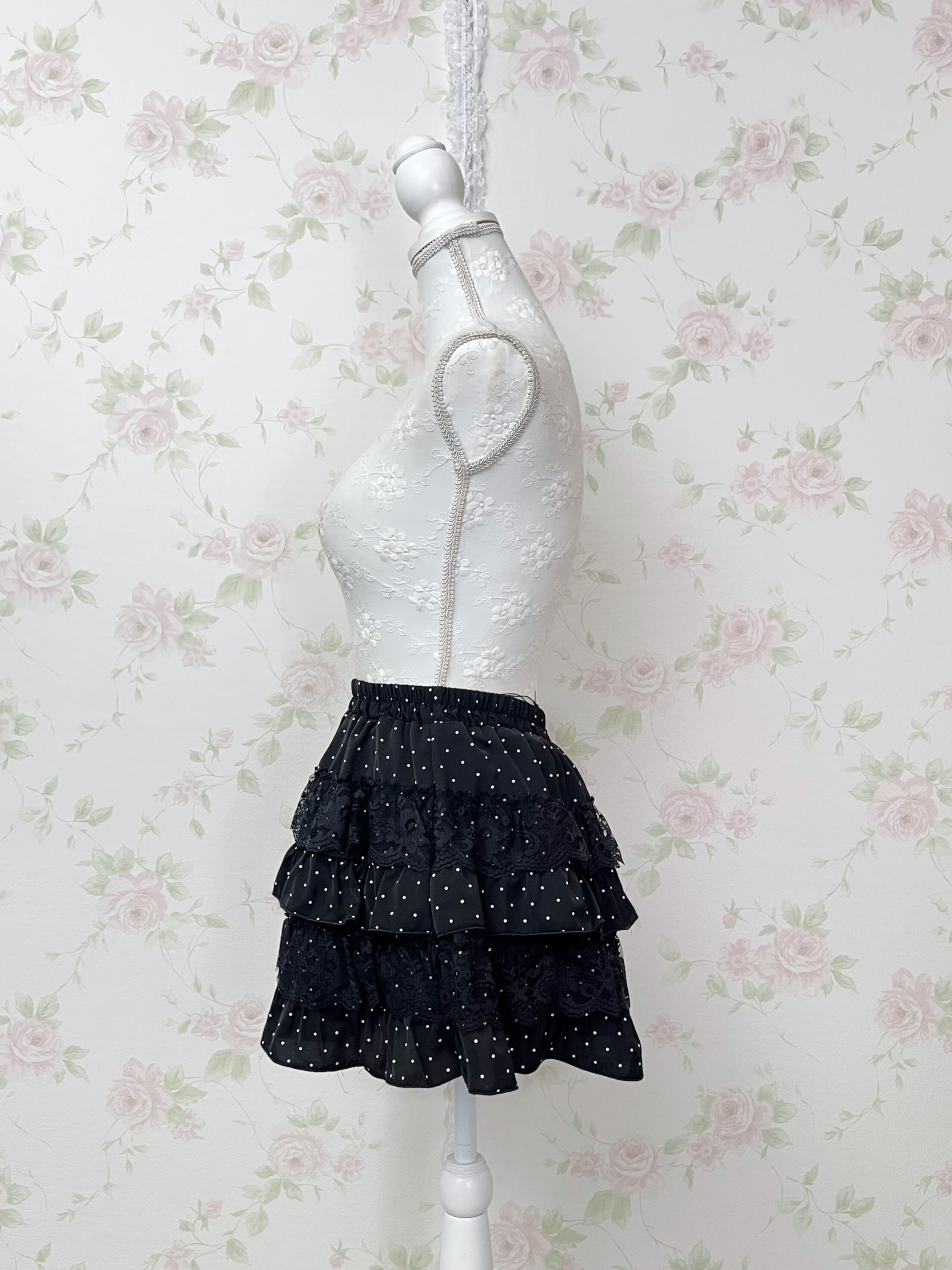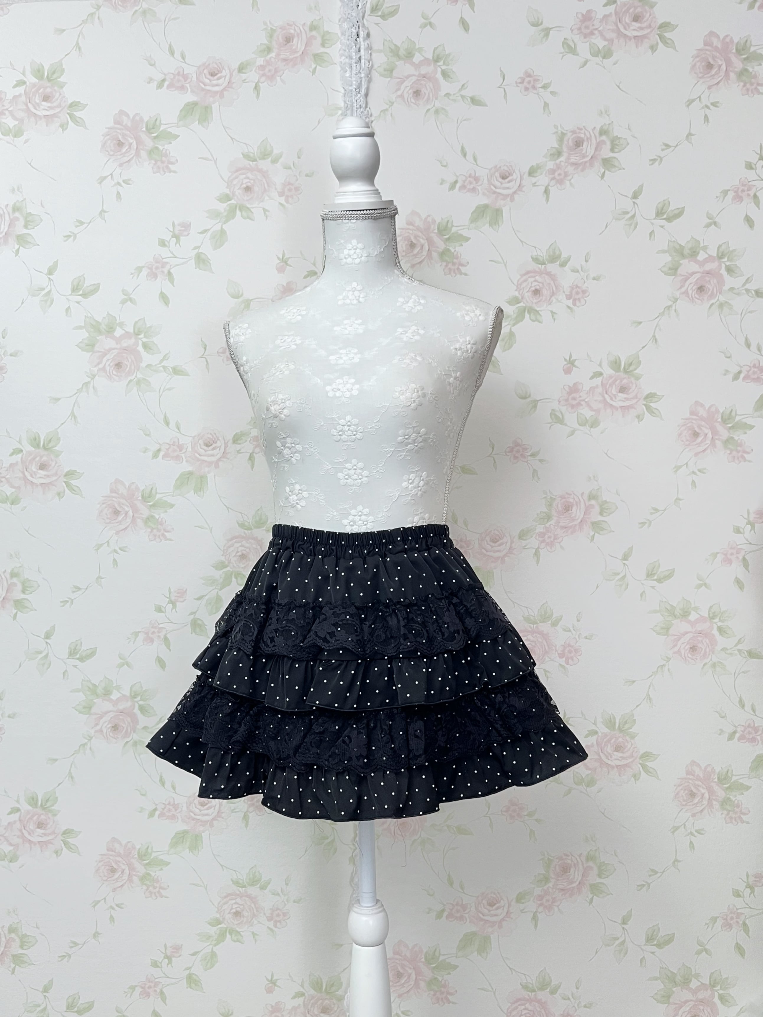 Tiered Lacy Polka Dot Skirt (Cookie&Cream)