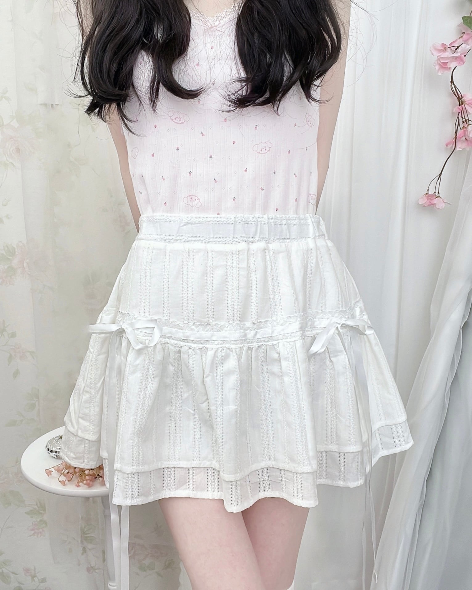 Cotton Side String Skirt (White)