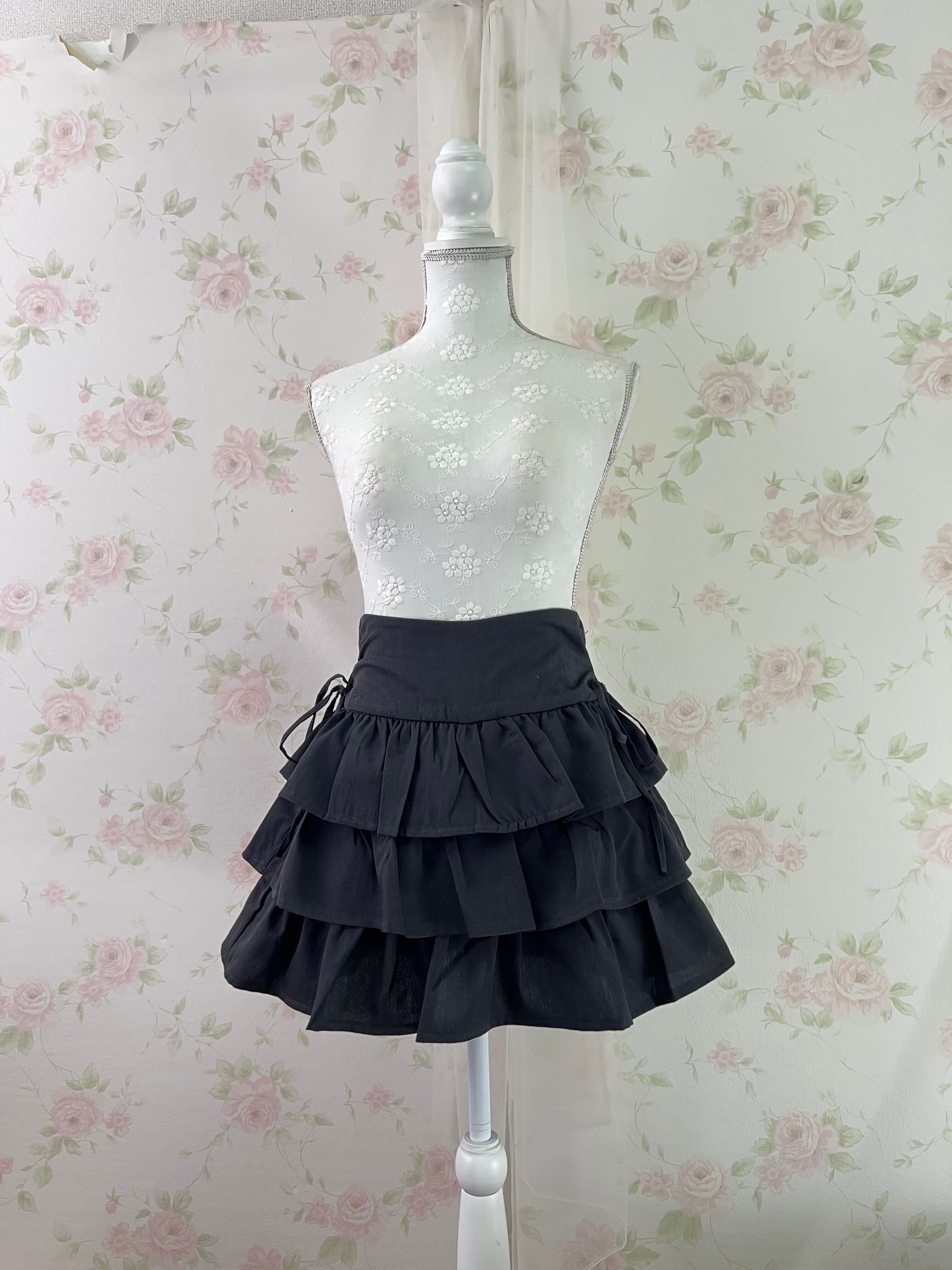 (Pre-order) Side Bow Tiered Skirt (Black)