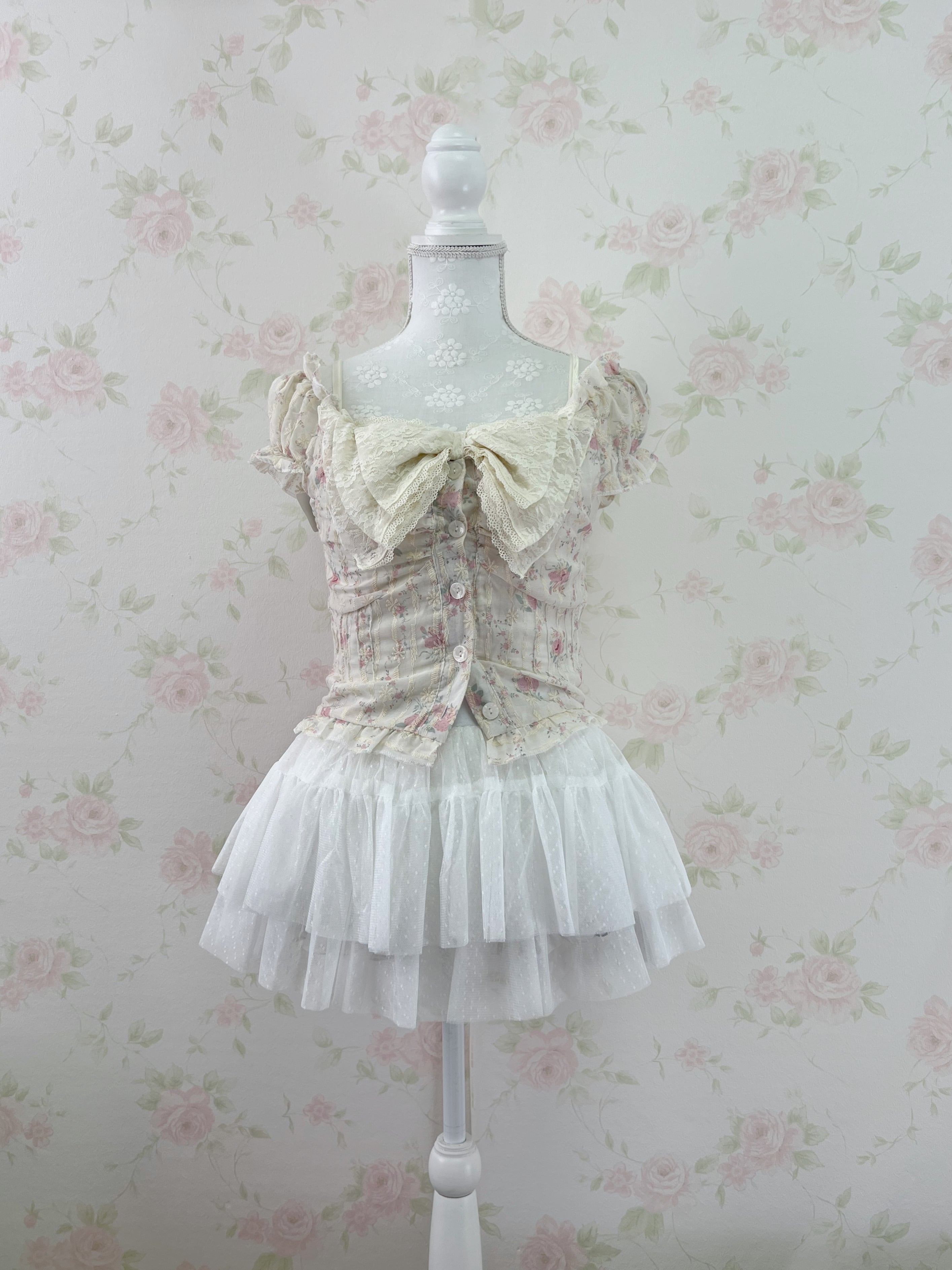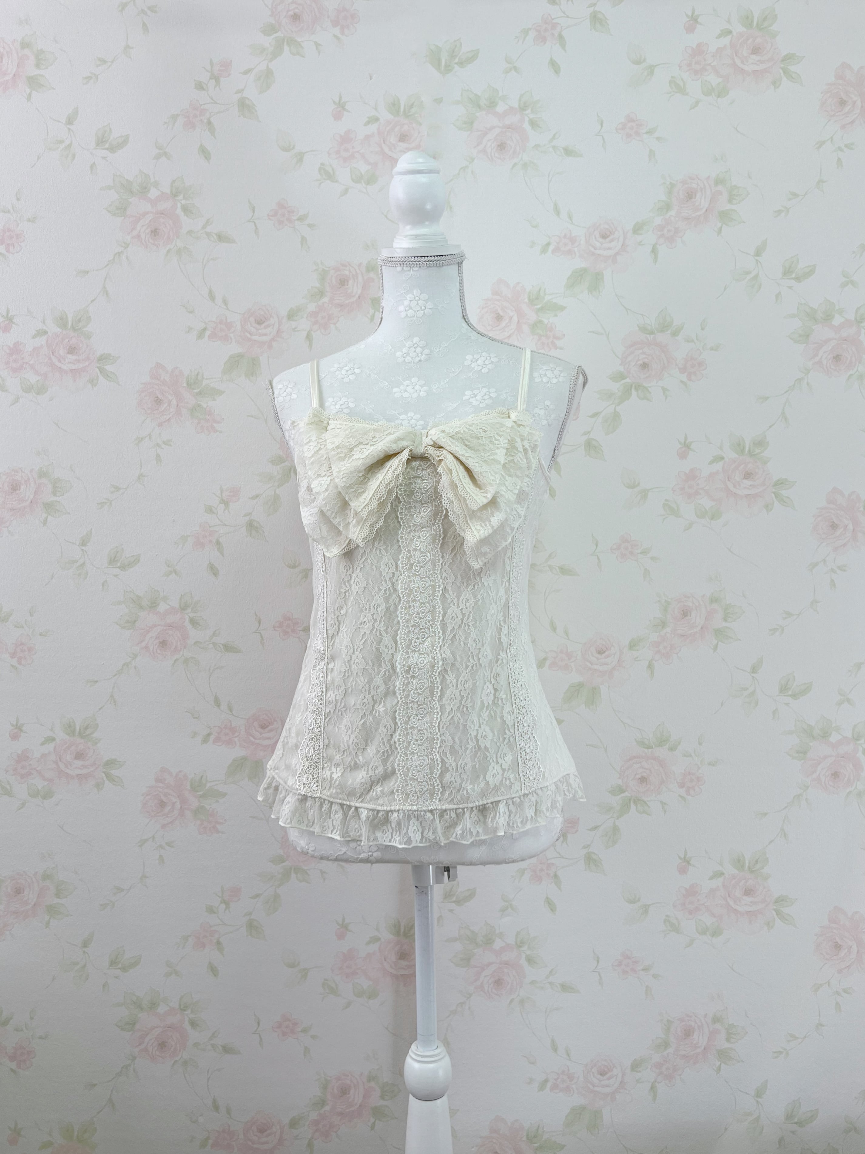 axes femme Y2K Big Bow Lace Camisole (Ivory)