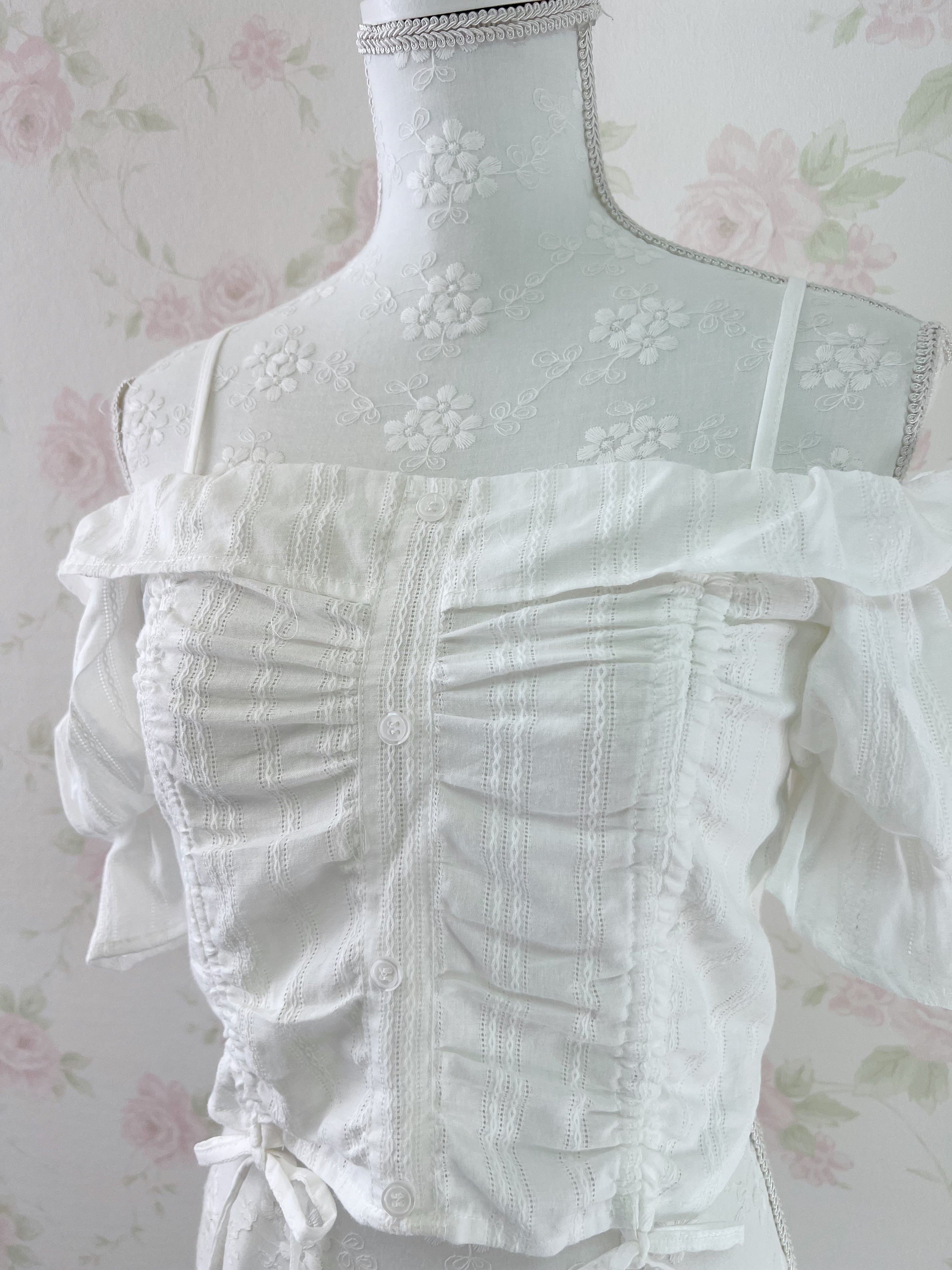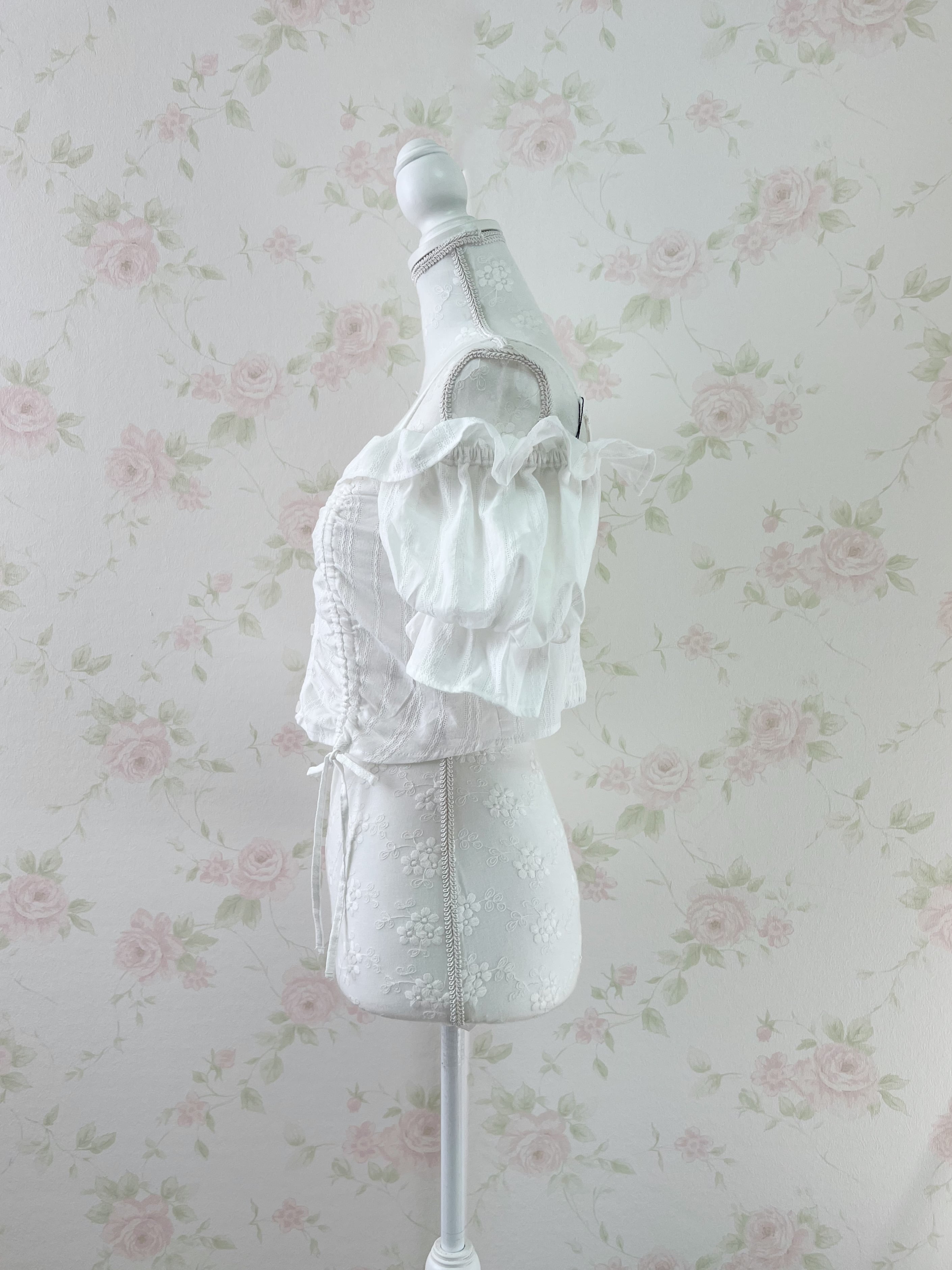 Puff Sleeve Off Shoulder Cotton Blouse (White)