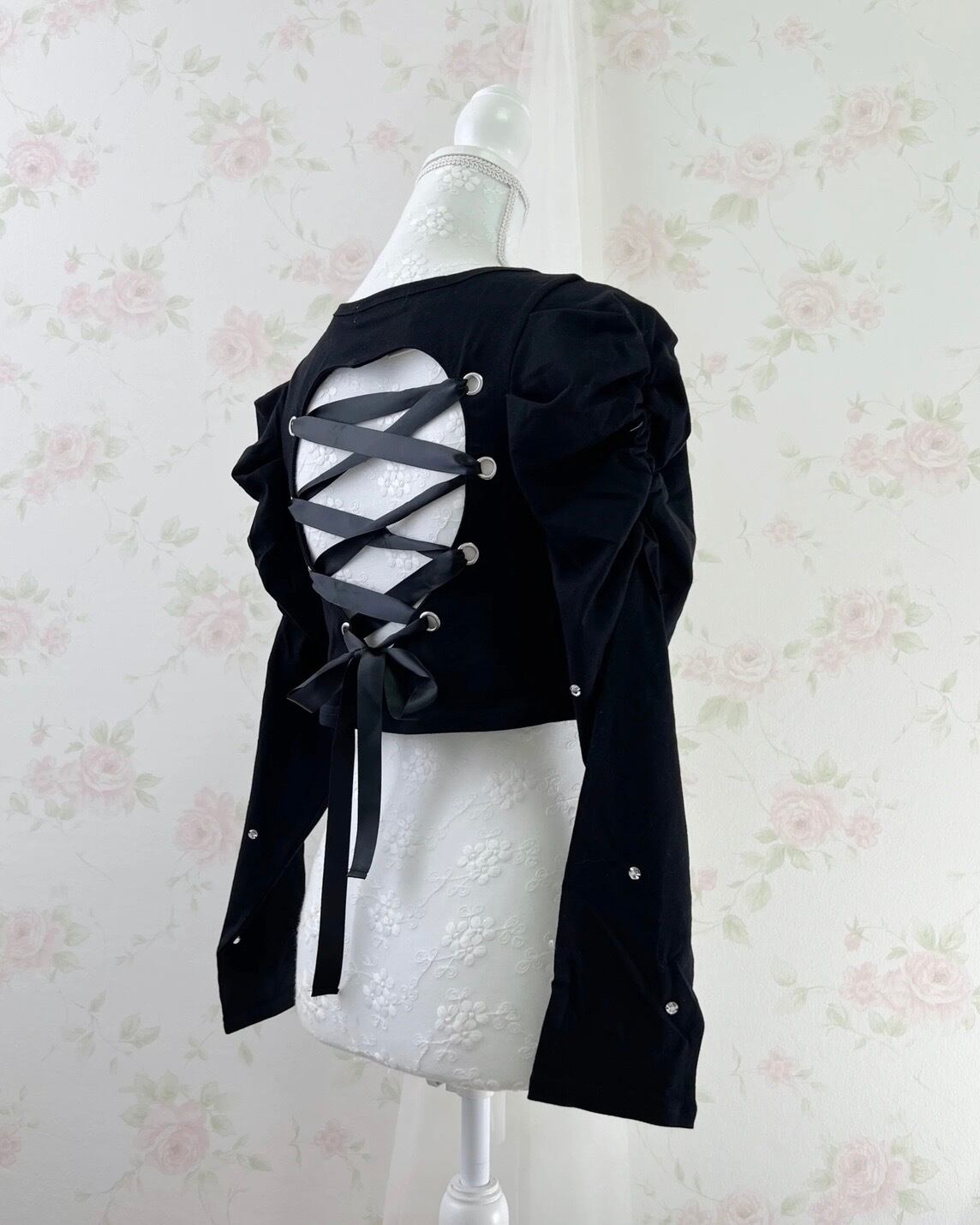 Ank Rouge Back Laced Up Heart T-Shirt (Black)
