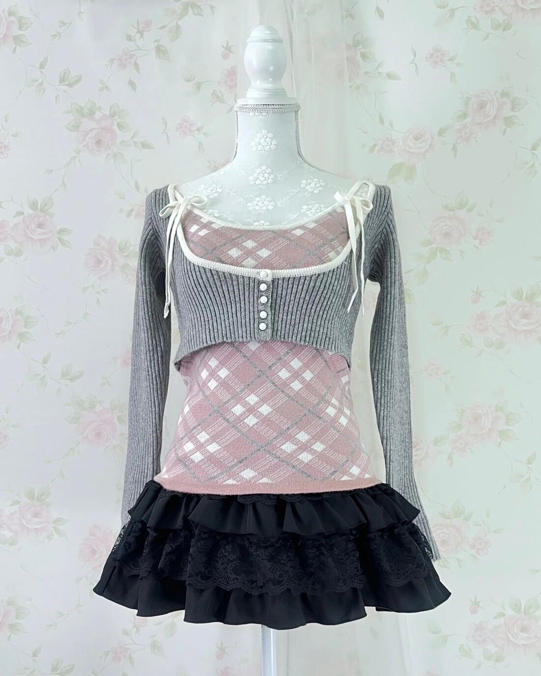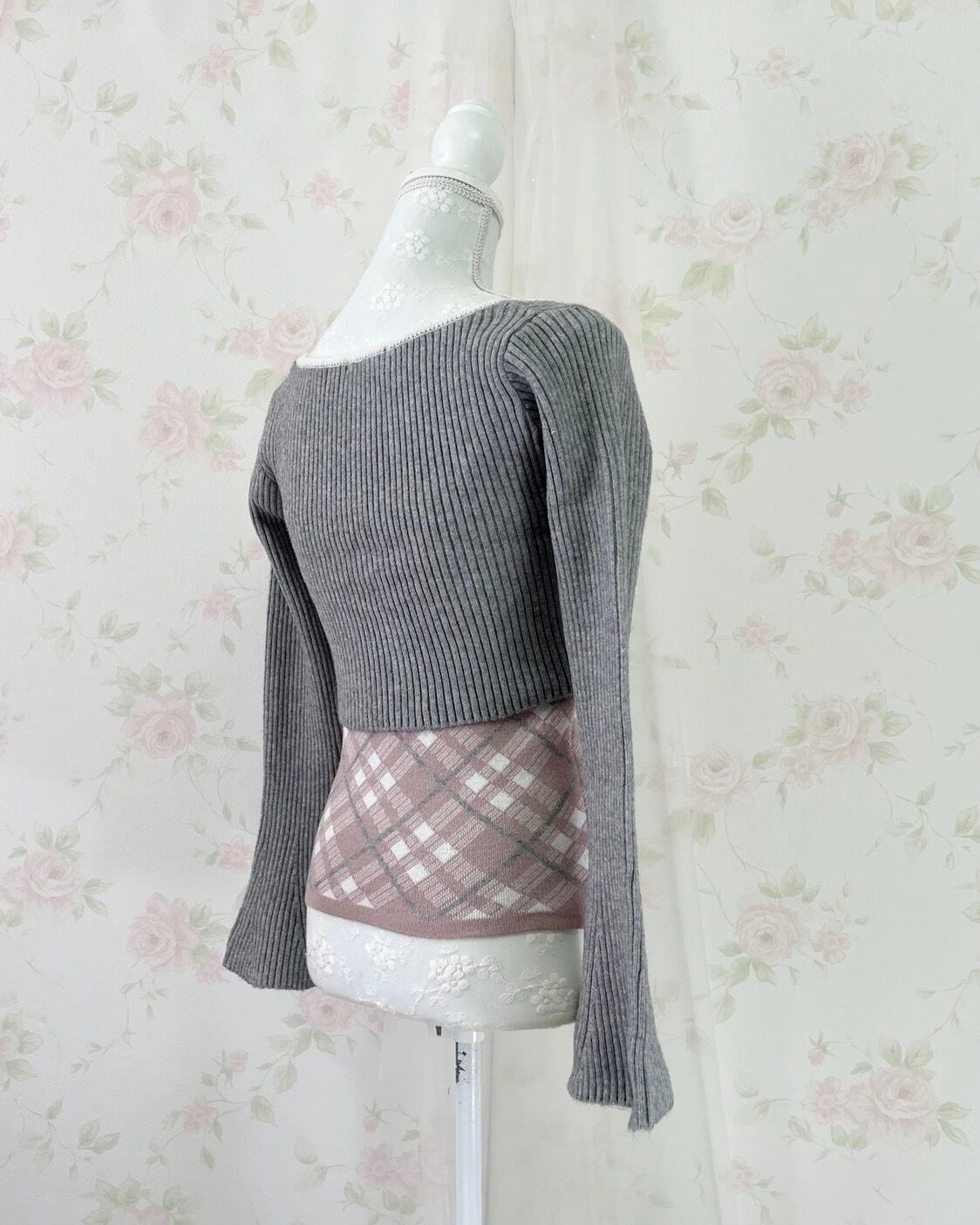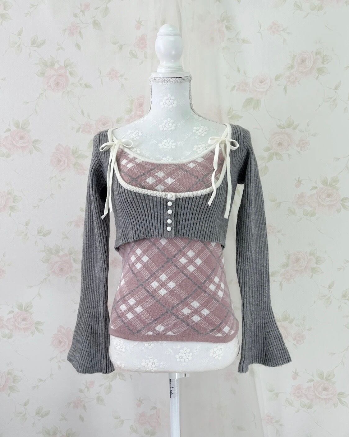 apres jour Short Knit Top & Camisole Set (Gray Pink)