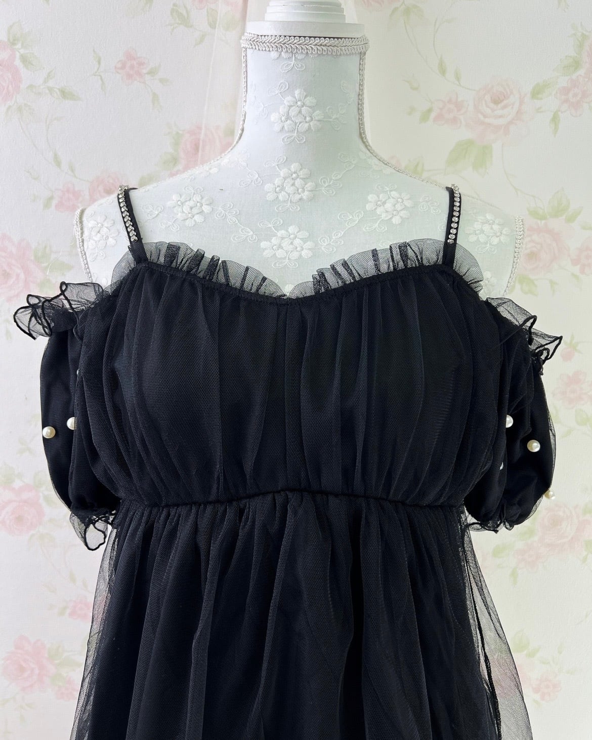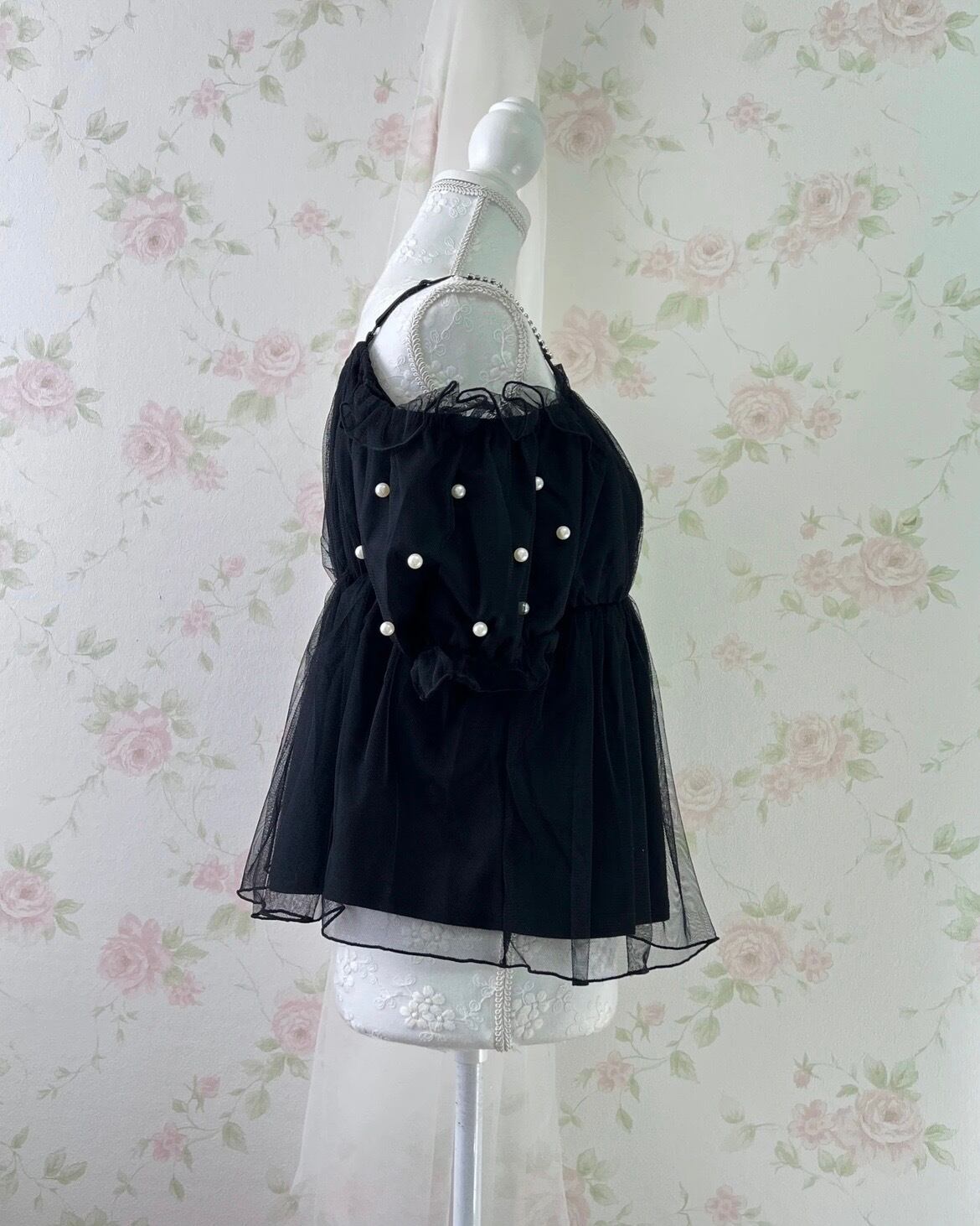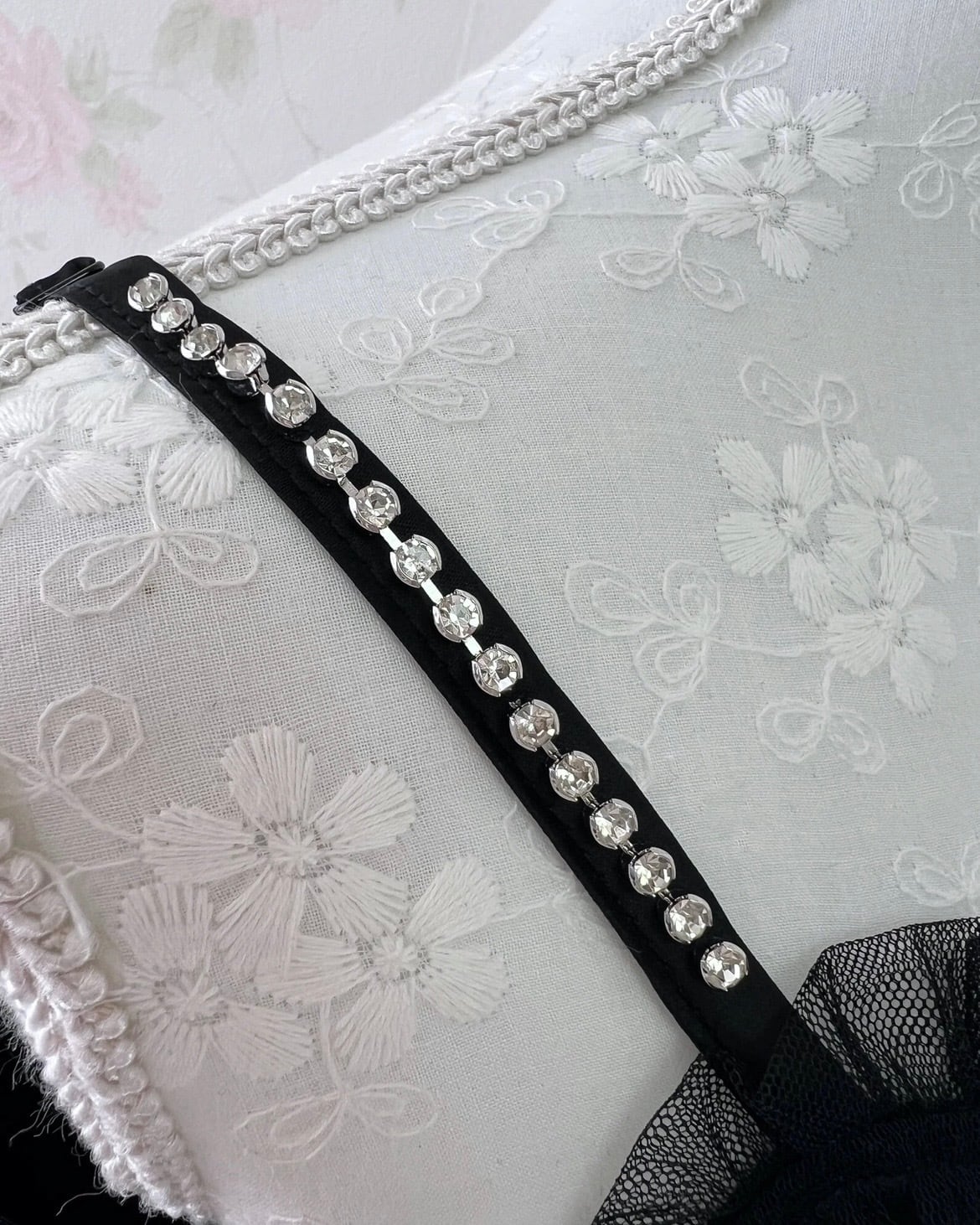 Ank Rouge Crystal Strap Chiffon Top (Black)