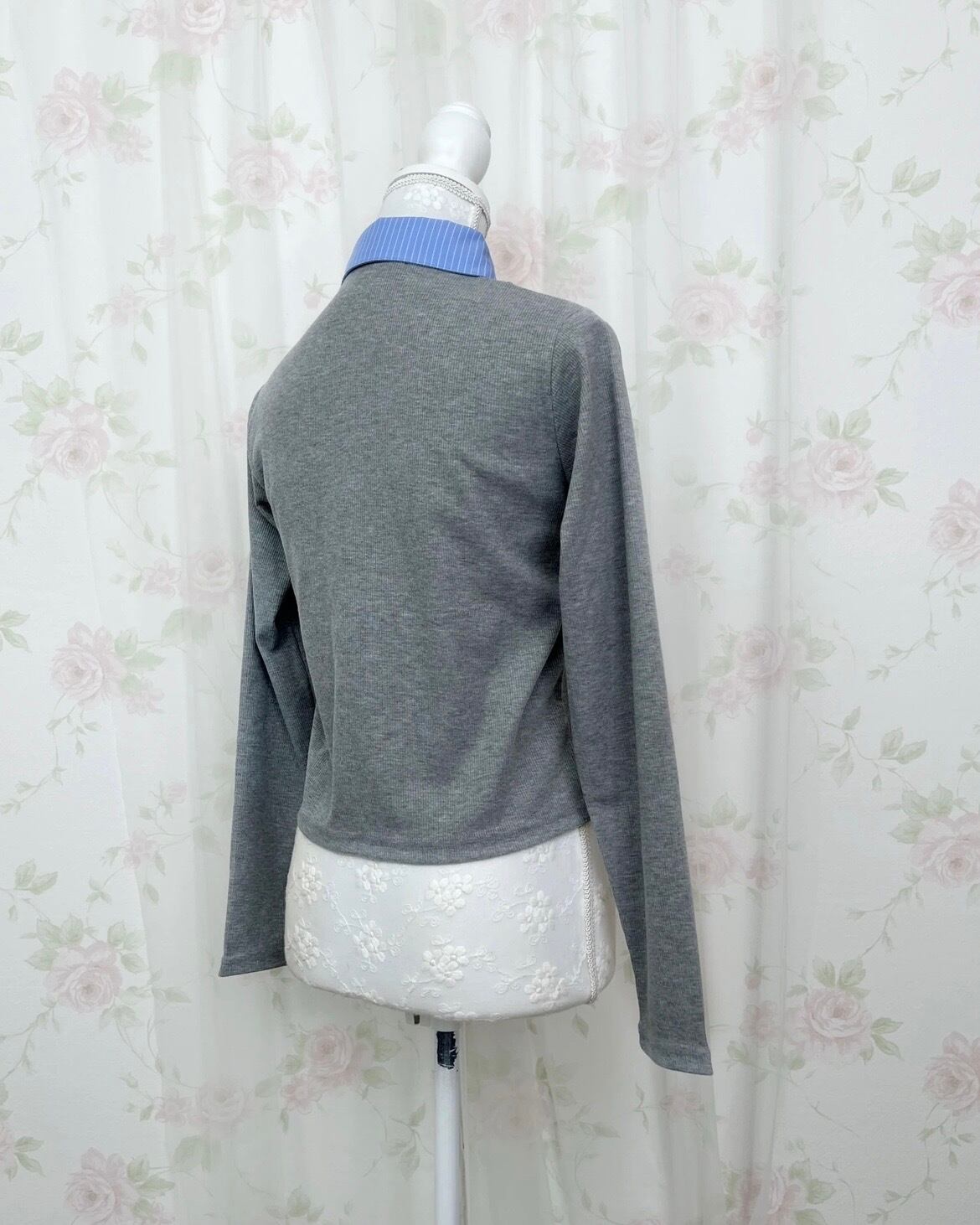 Shirt Attached Layer Like Top (Gray)