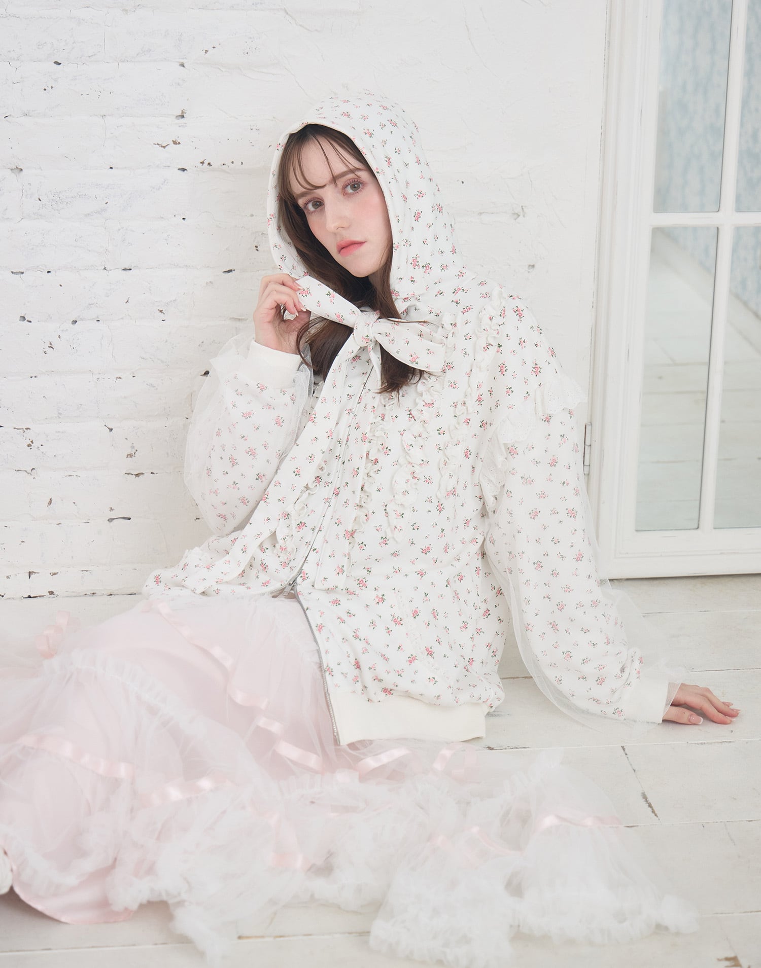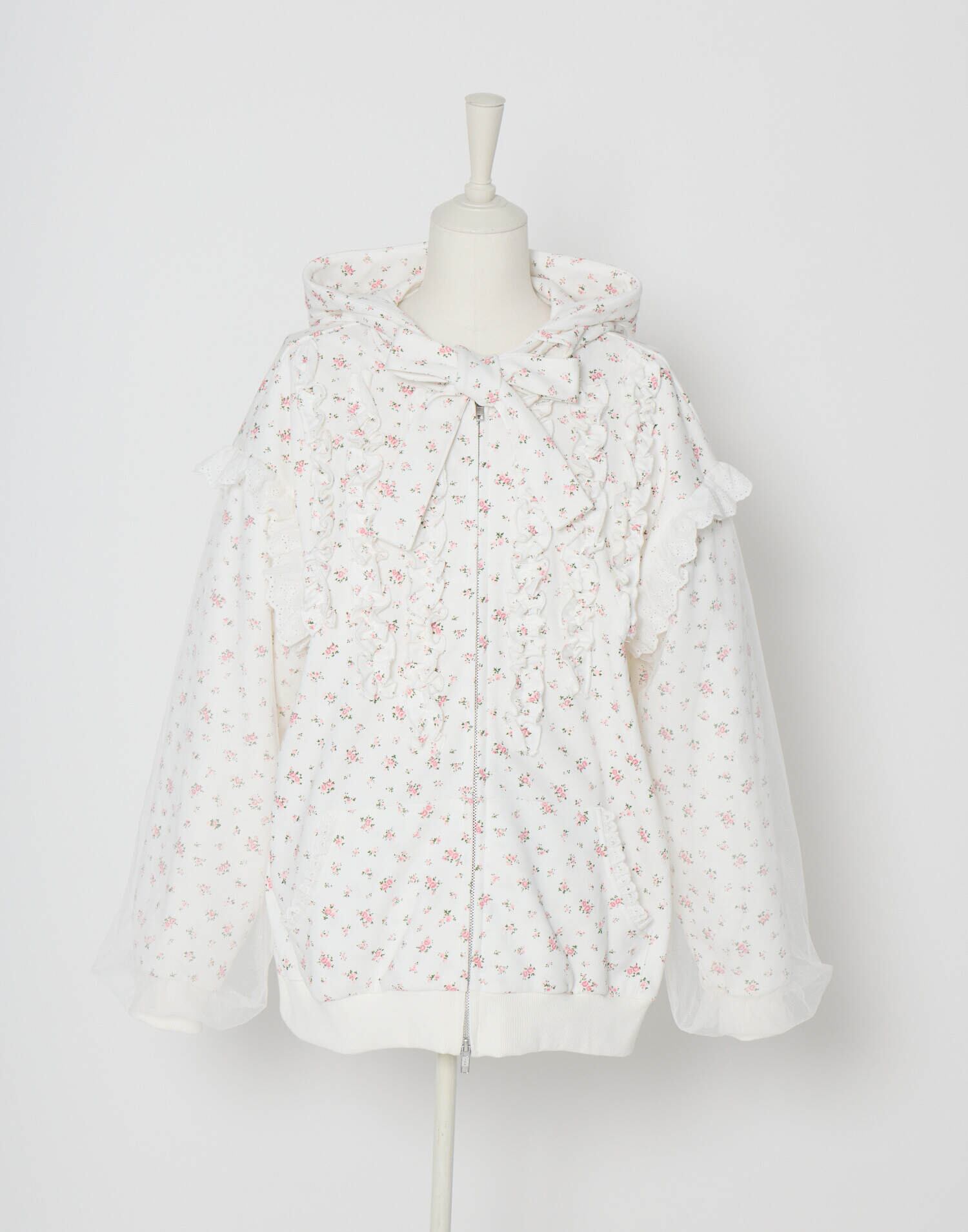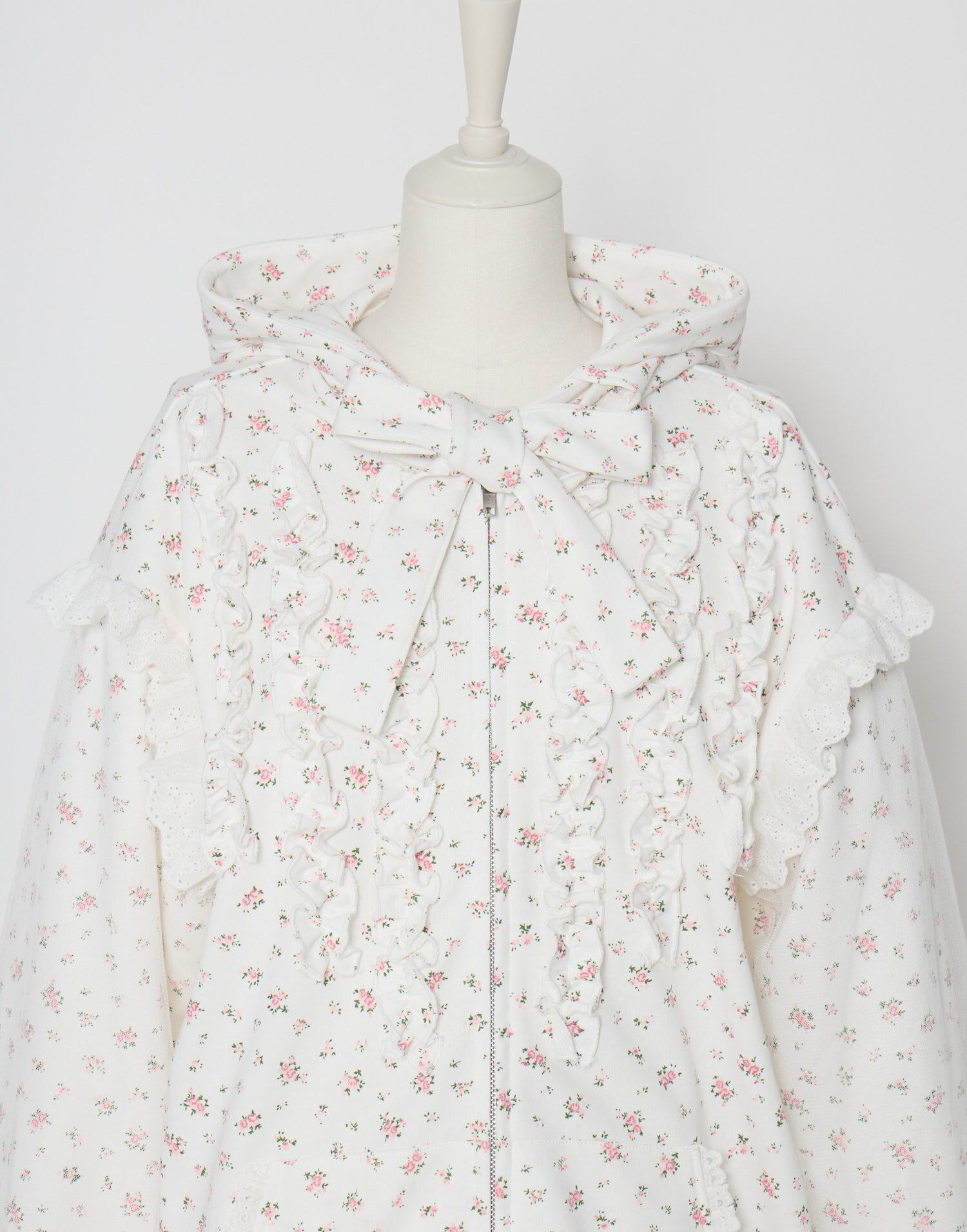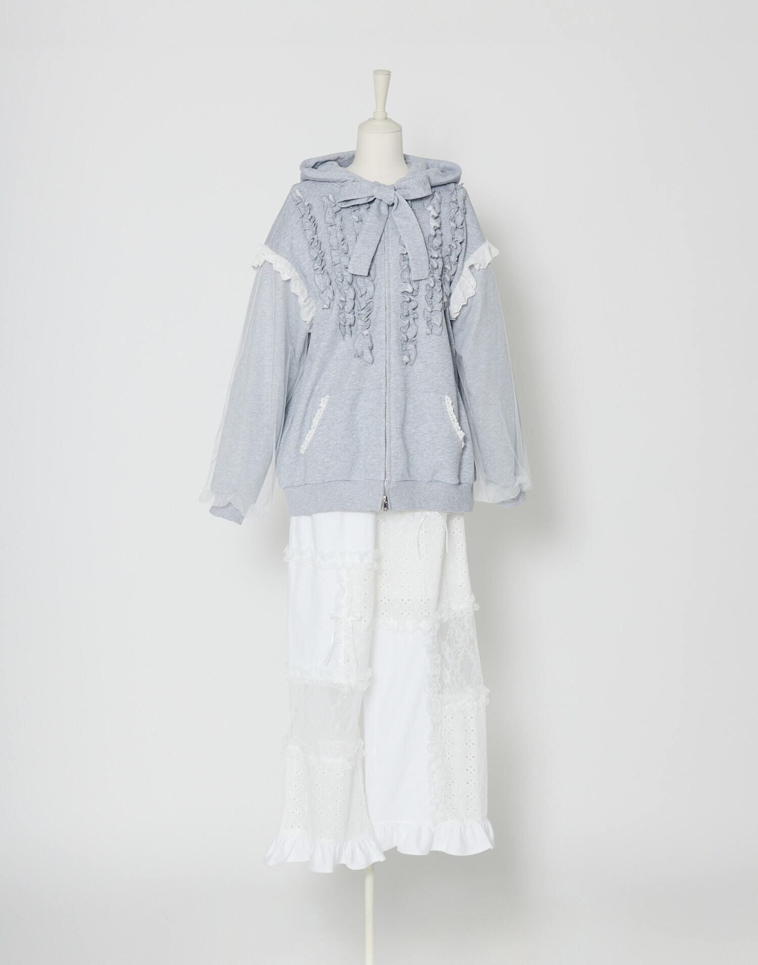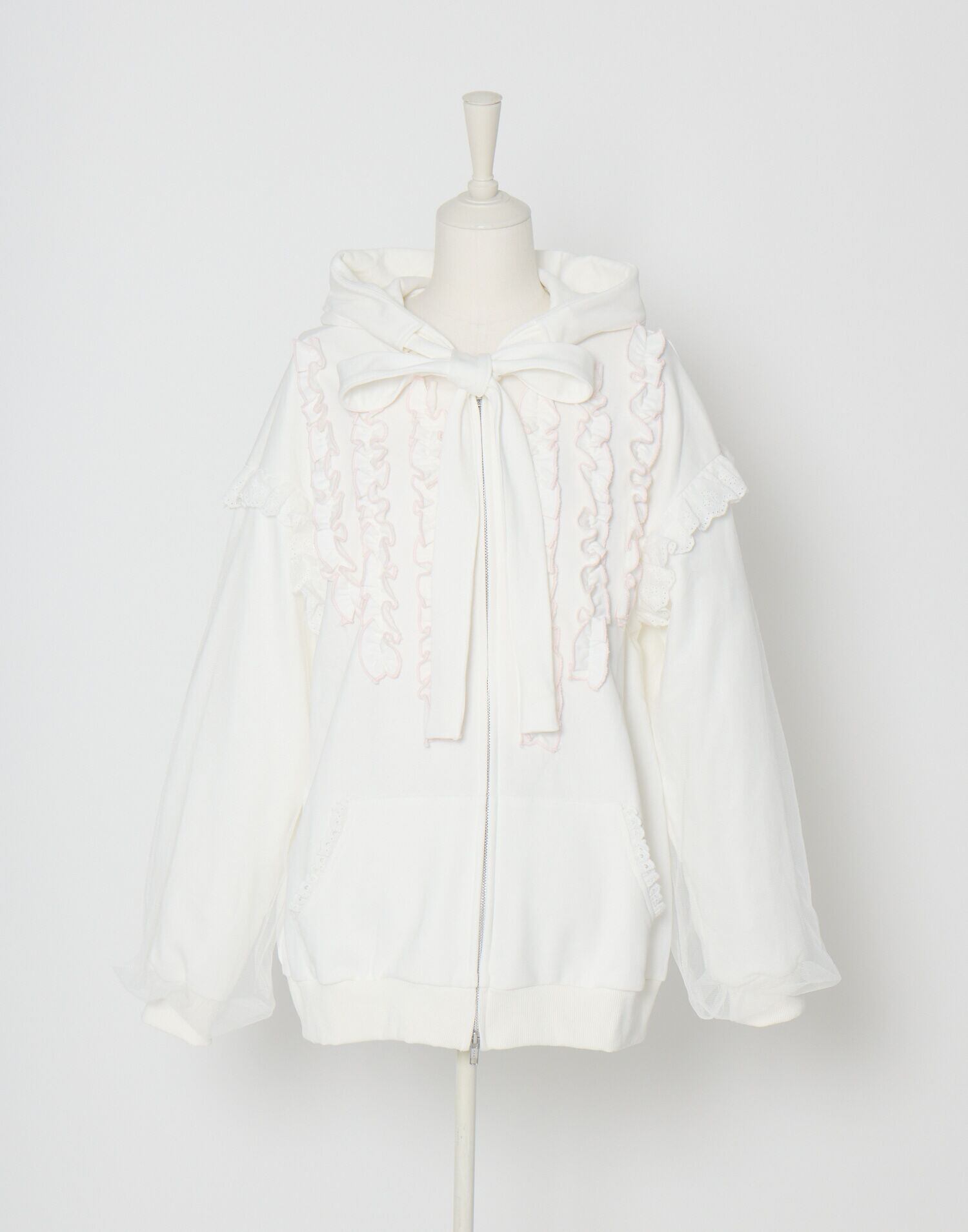 Lolime ribbon frill hood zip-up