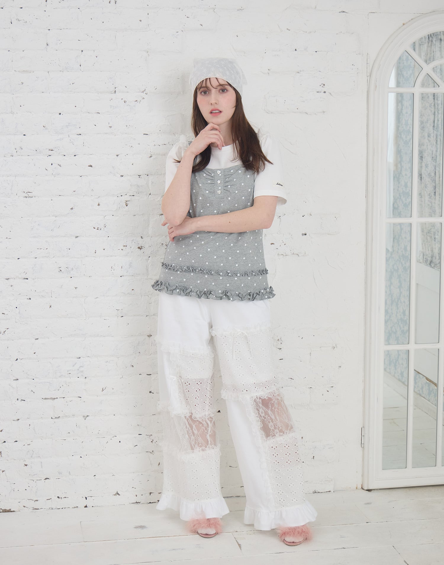 Lolime patchwork lace frill pants