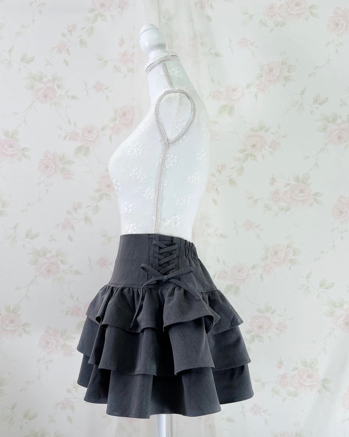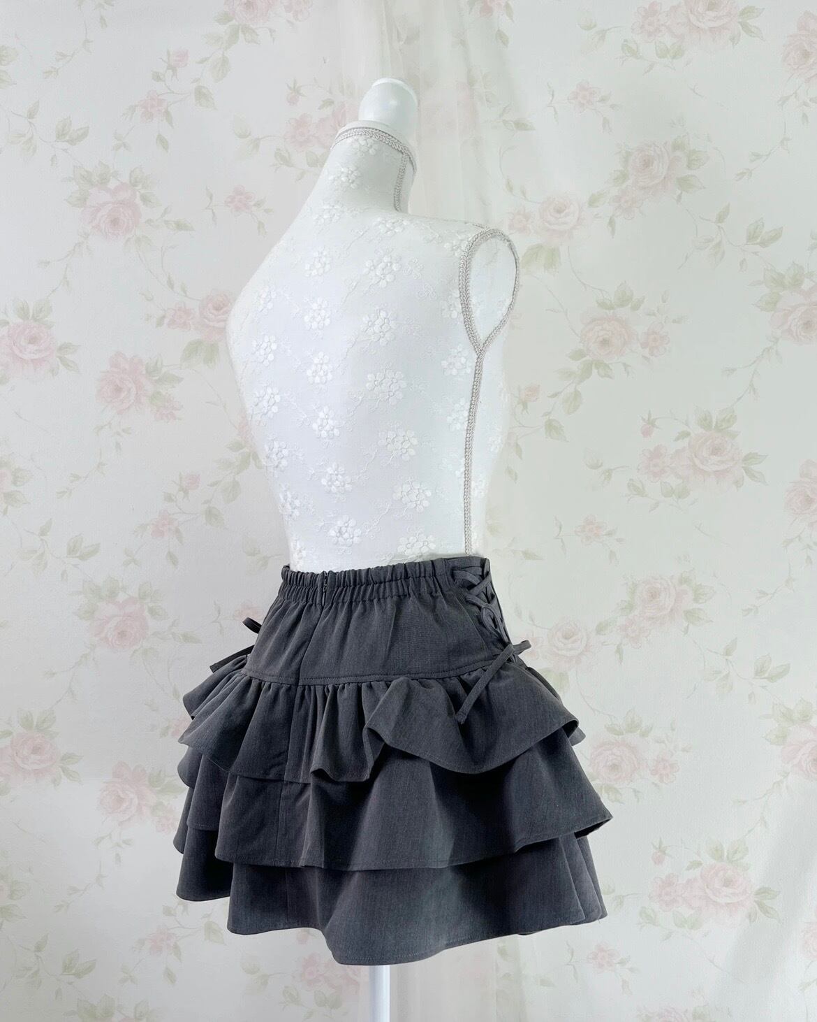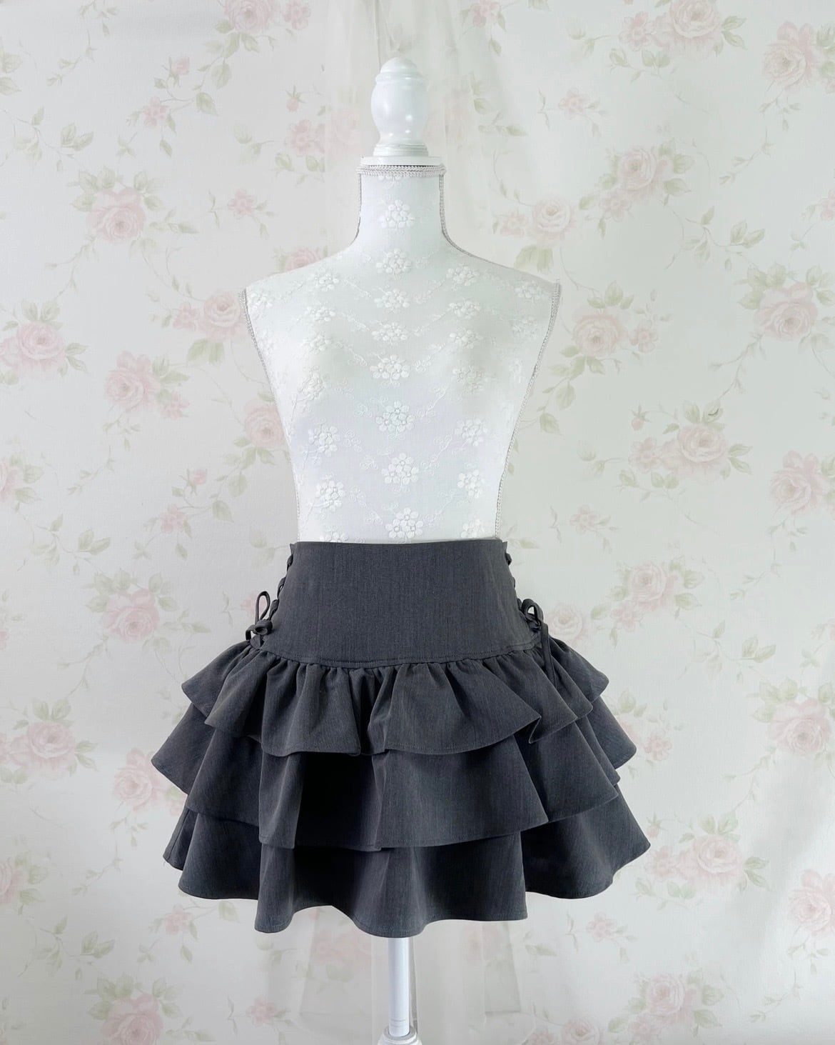 High Waist Tiered Side Bow Skirt (Gray)