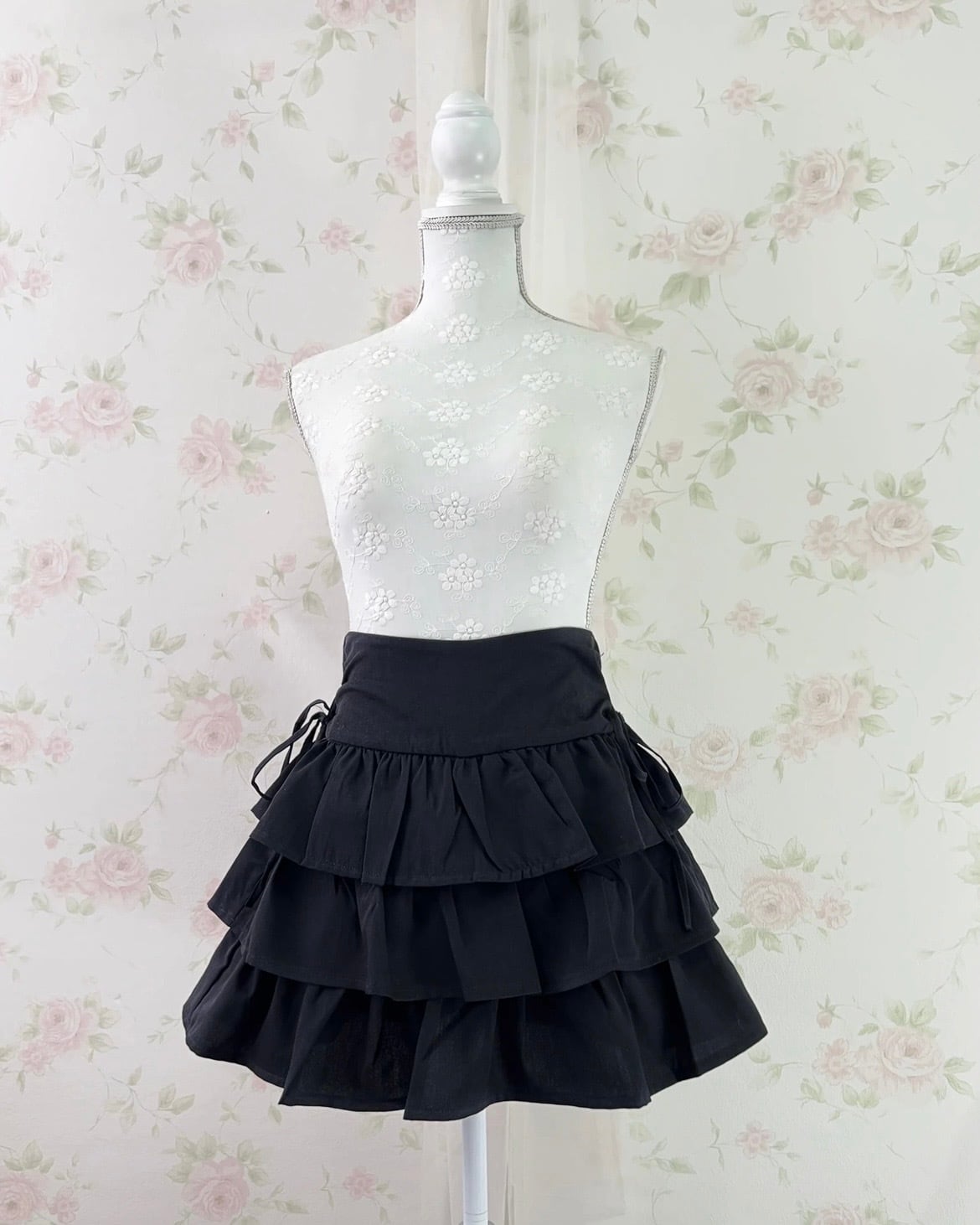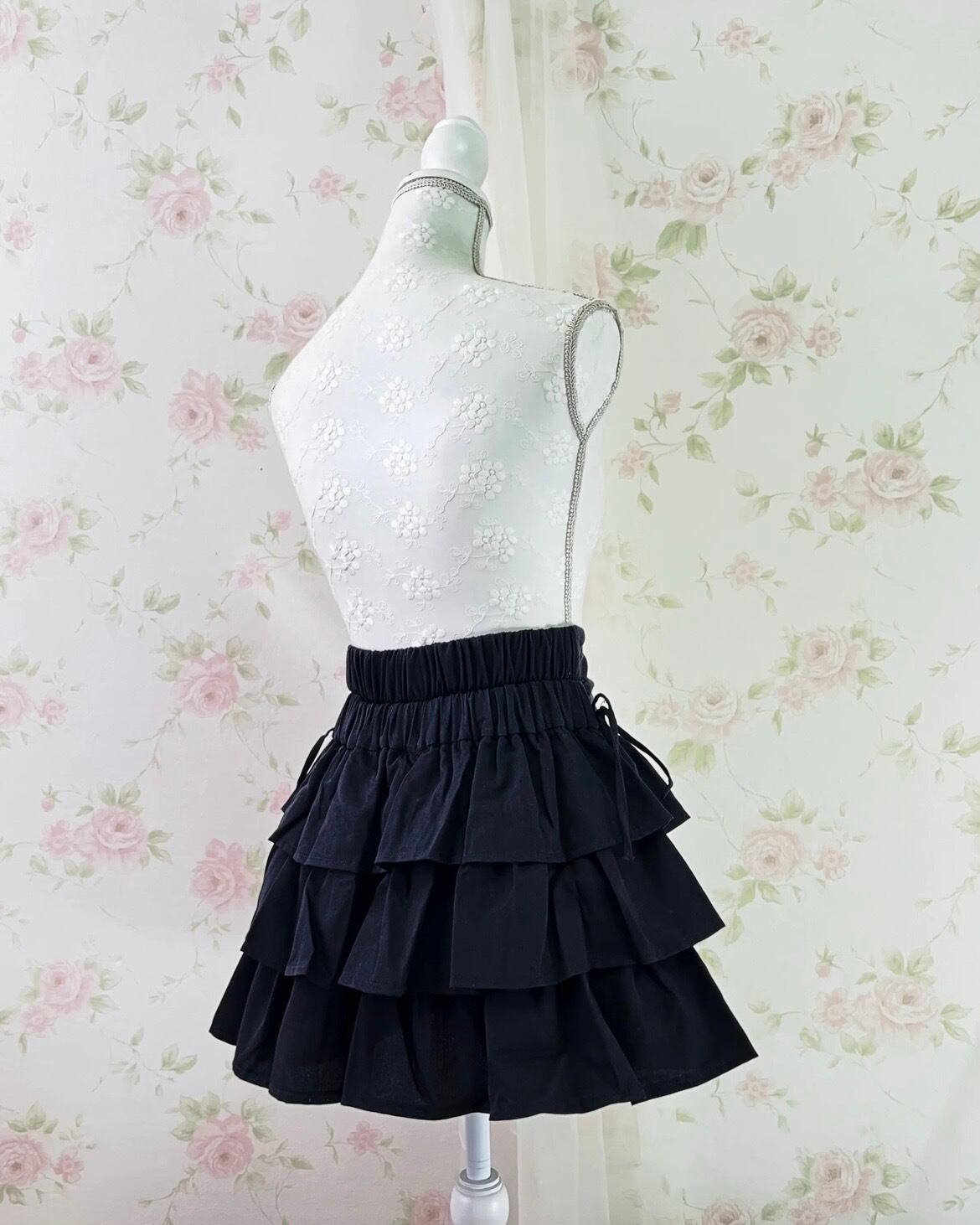 Side Bow Tiered Skirt (Black)