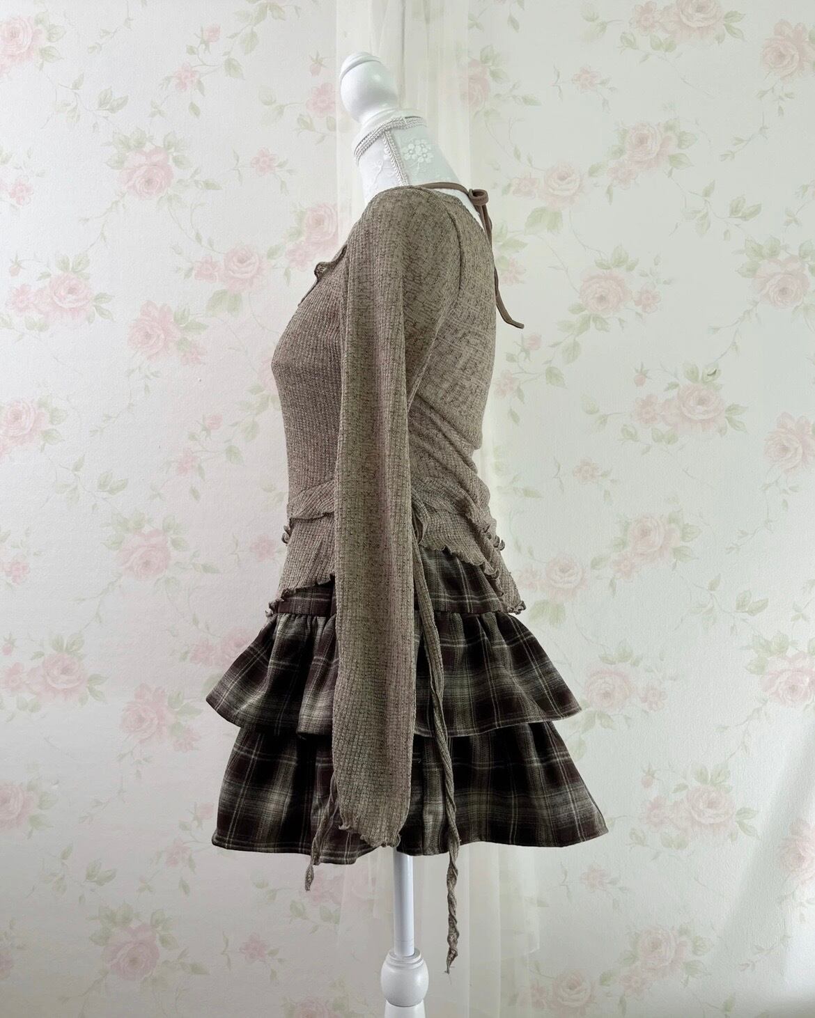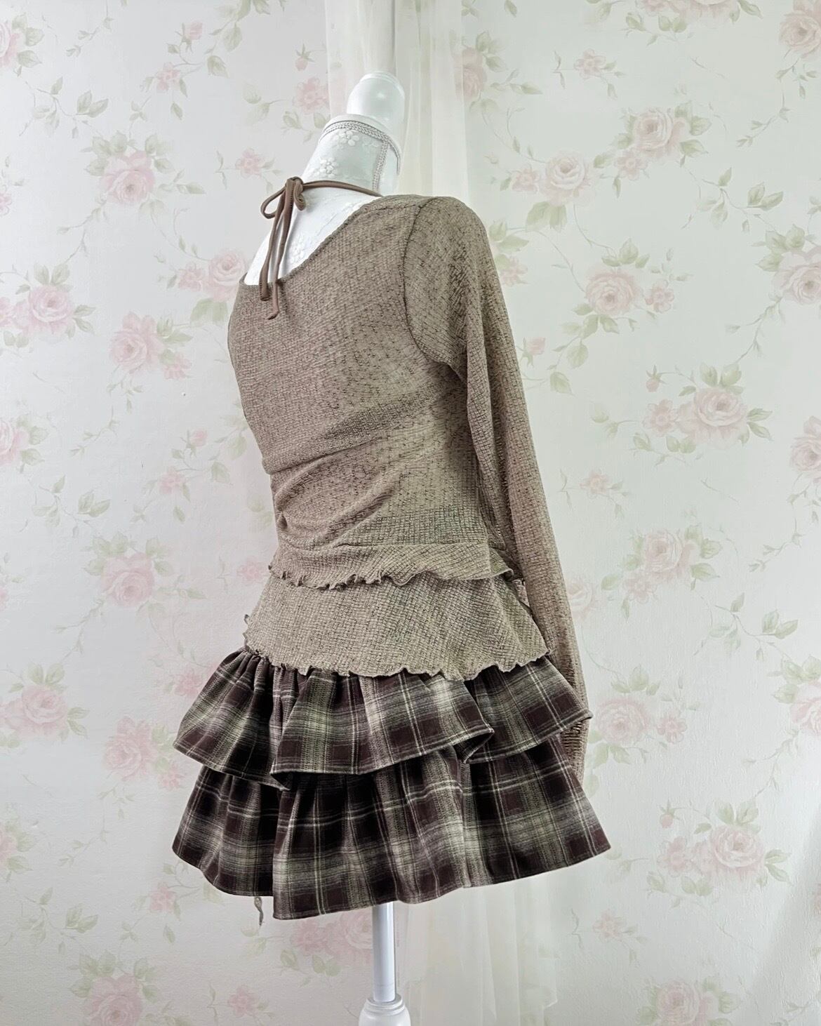Y2K Layered Halter Neck Top( Milk Tea Beige)