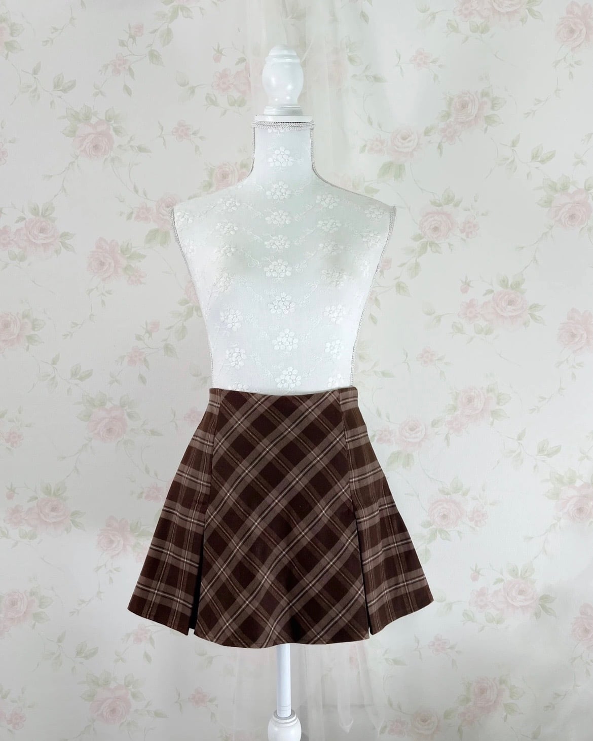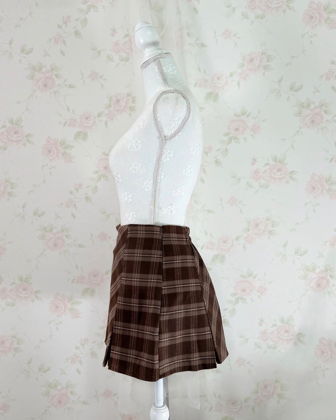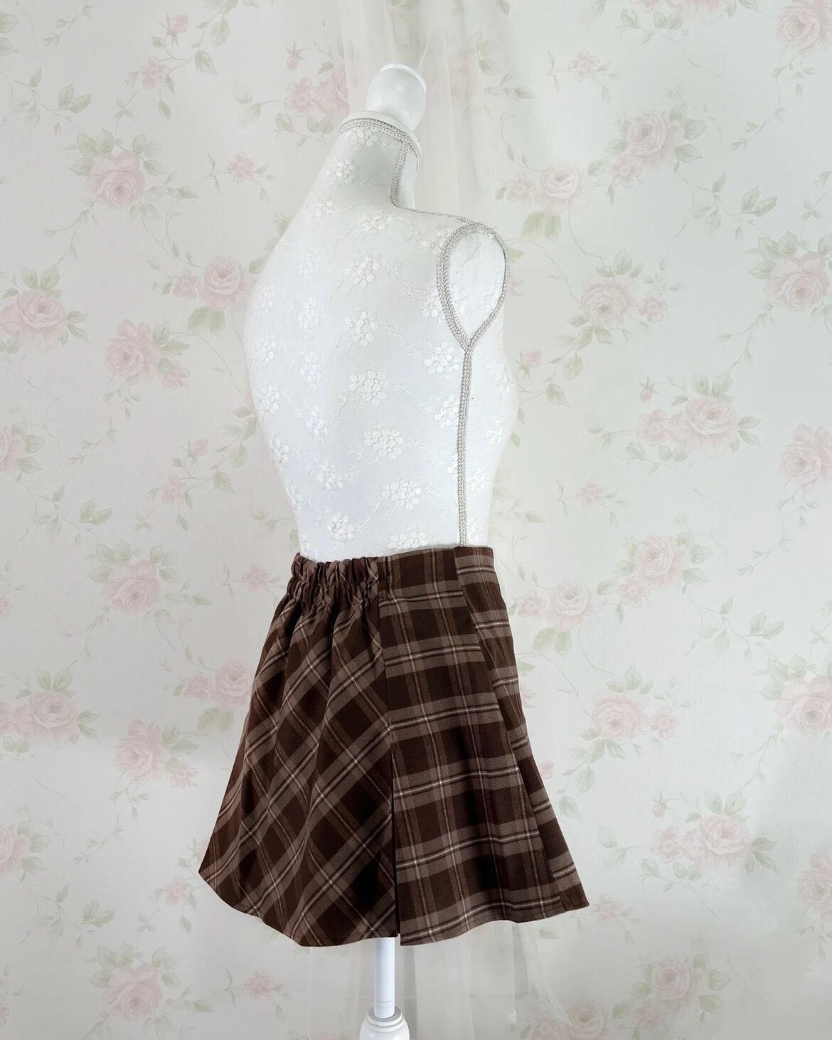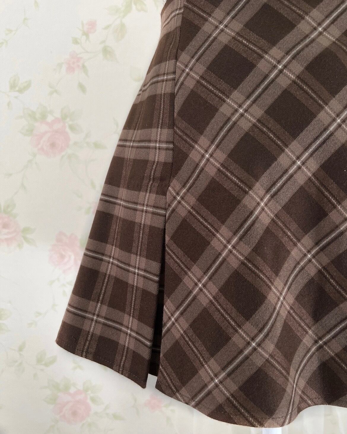 Trapezoid Checked Skirt (Brown)
