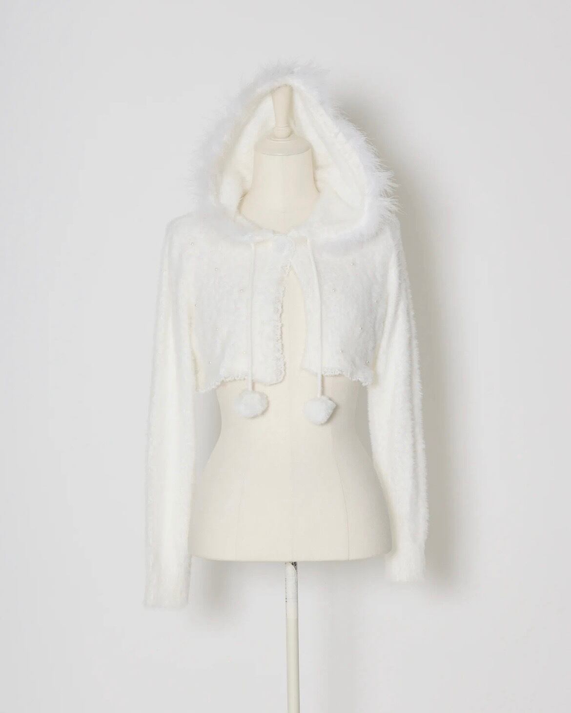 mellfy memory Fluffy pom-pom Angel hoodie cardigan