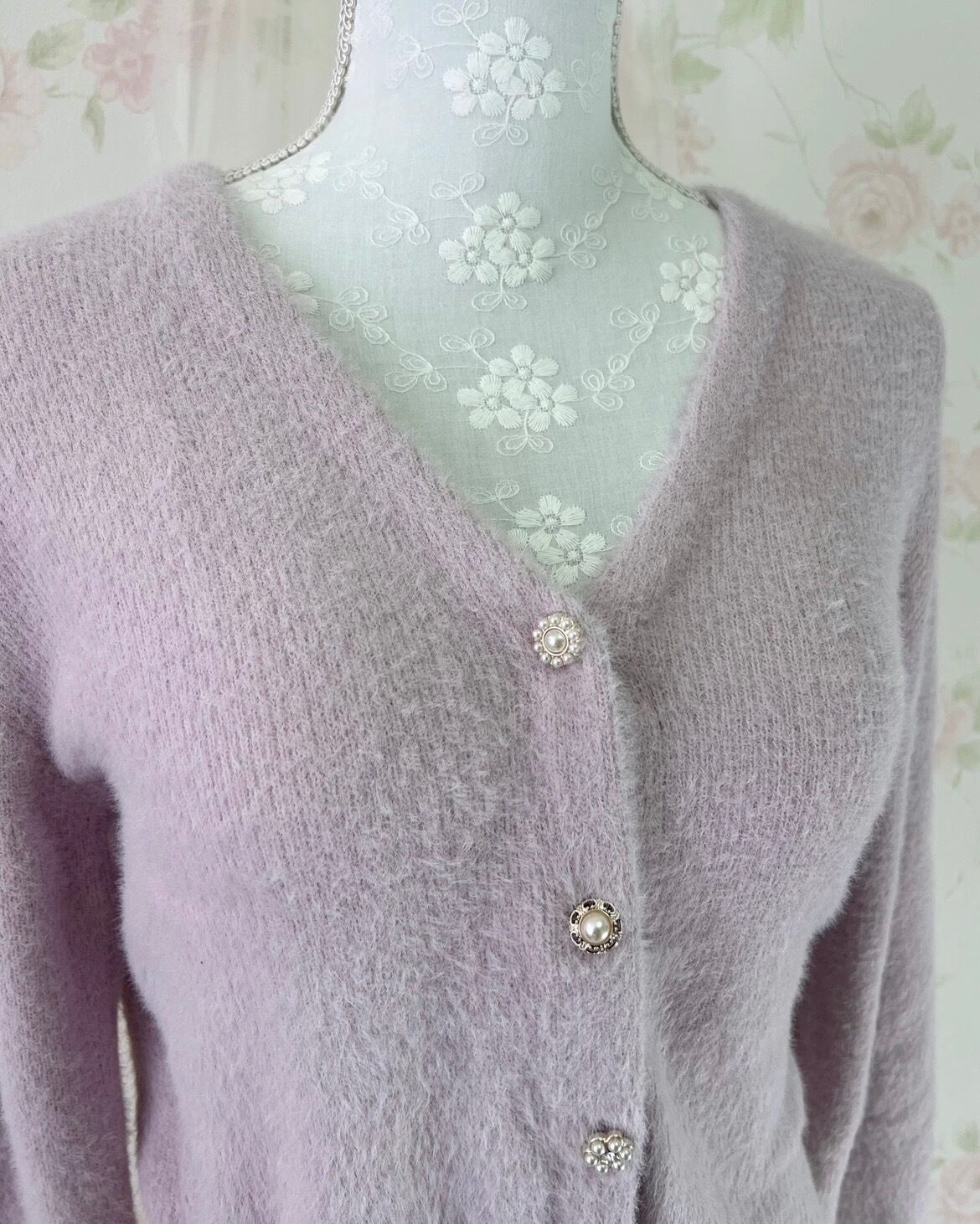 Pearl Button Shaggy Cardigan (Purple)